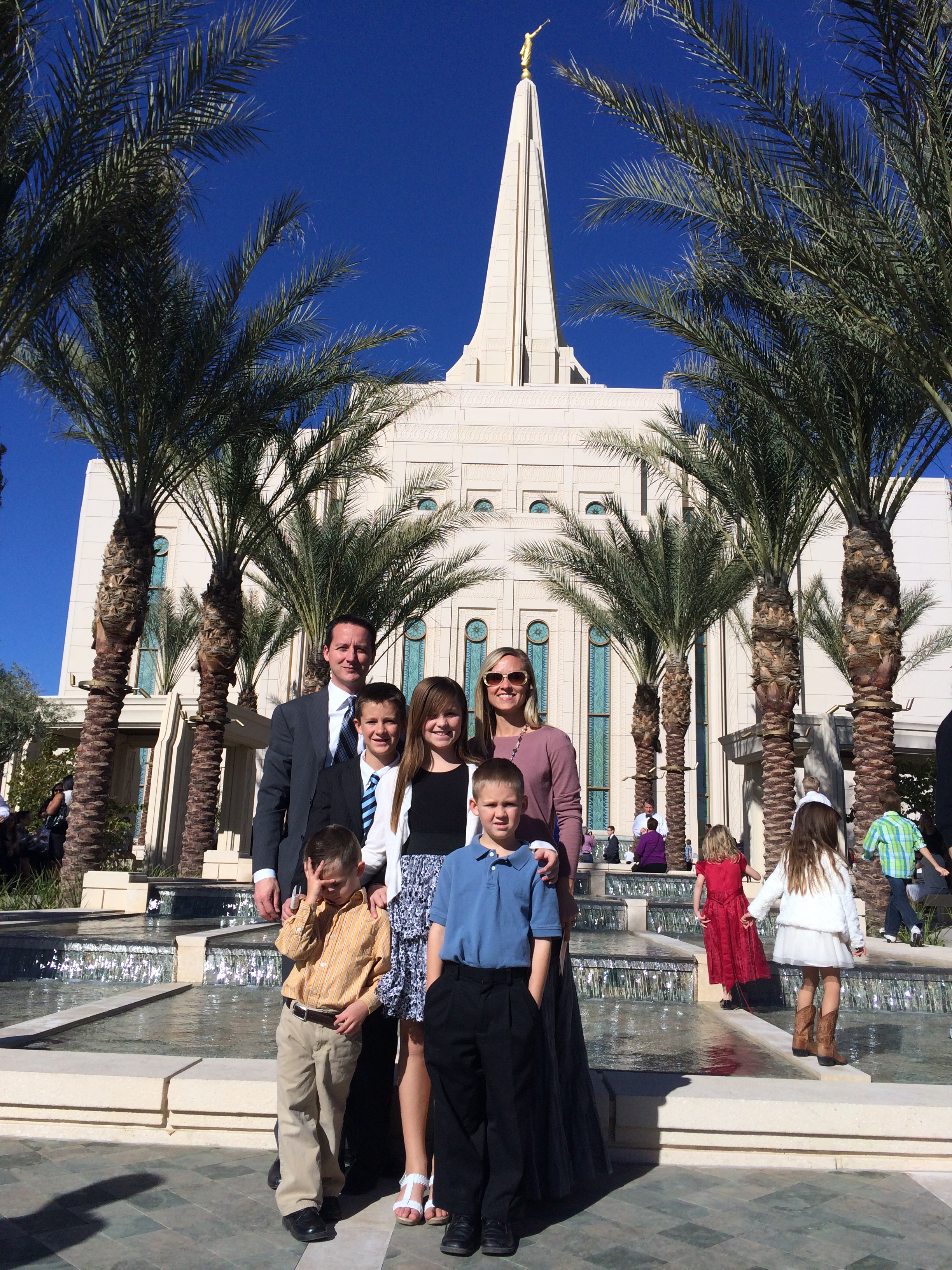 The promise of an eternal family provides hope and comfort to the Mike and Susie Peters family of Gilbert, Arizona after losing their son, Matthew (the boy in the middle with the striped shirt), who was stricken with leukemia. In 2013 he passed away at the age of 17. Local Gilbert television station ABC 15 interviewed the Peters family to get its perspective on temples in a news story entitled “What Temples Mean to Mormons.”