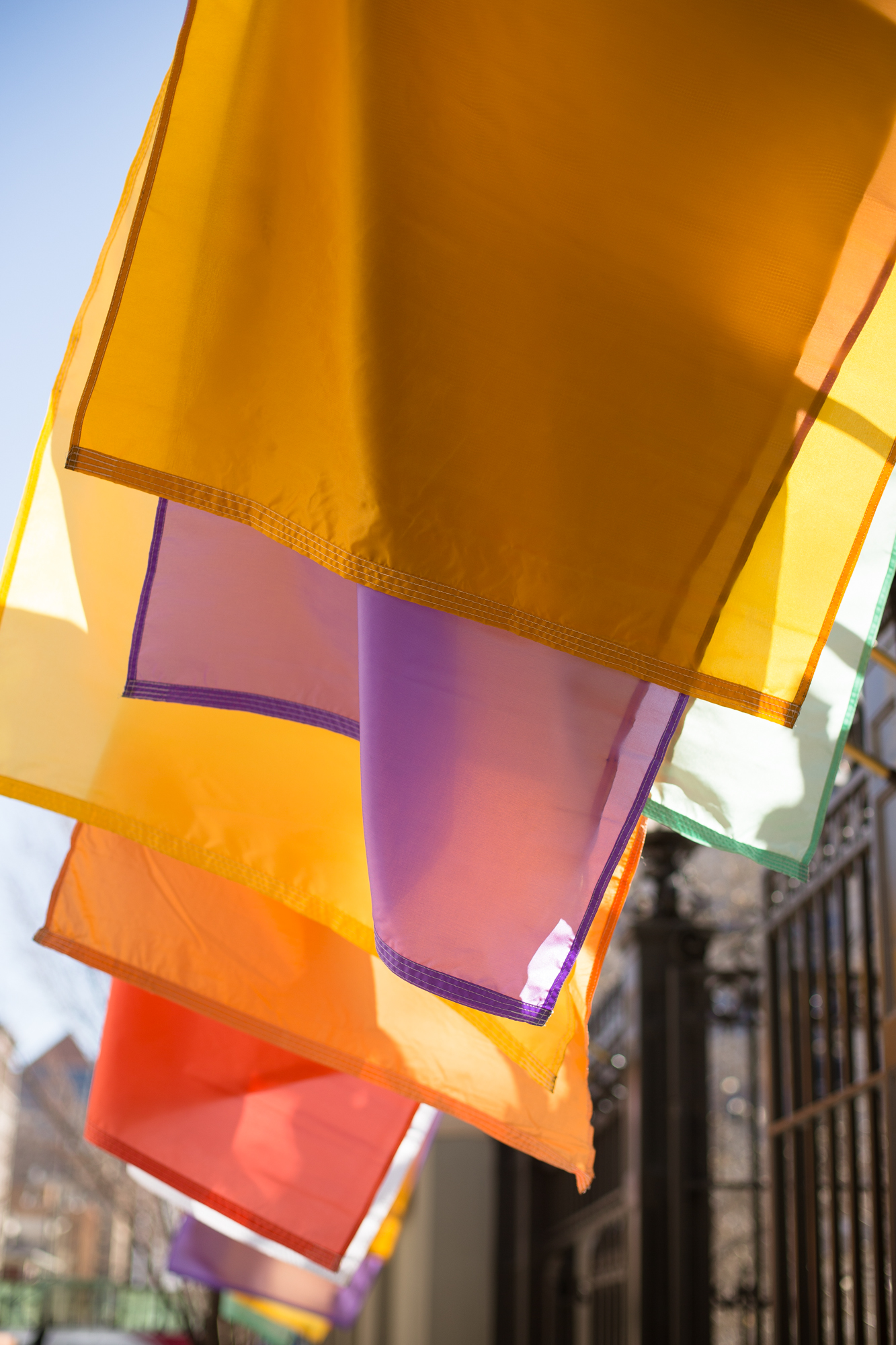 The Young Women program emphasizes eight values — faith, divine nature, individual worth, knowledge, choice and accountability, good works, integrity and virtue — each represented by a different color, as in these flags.