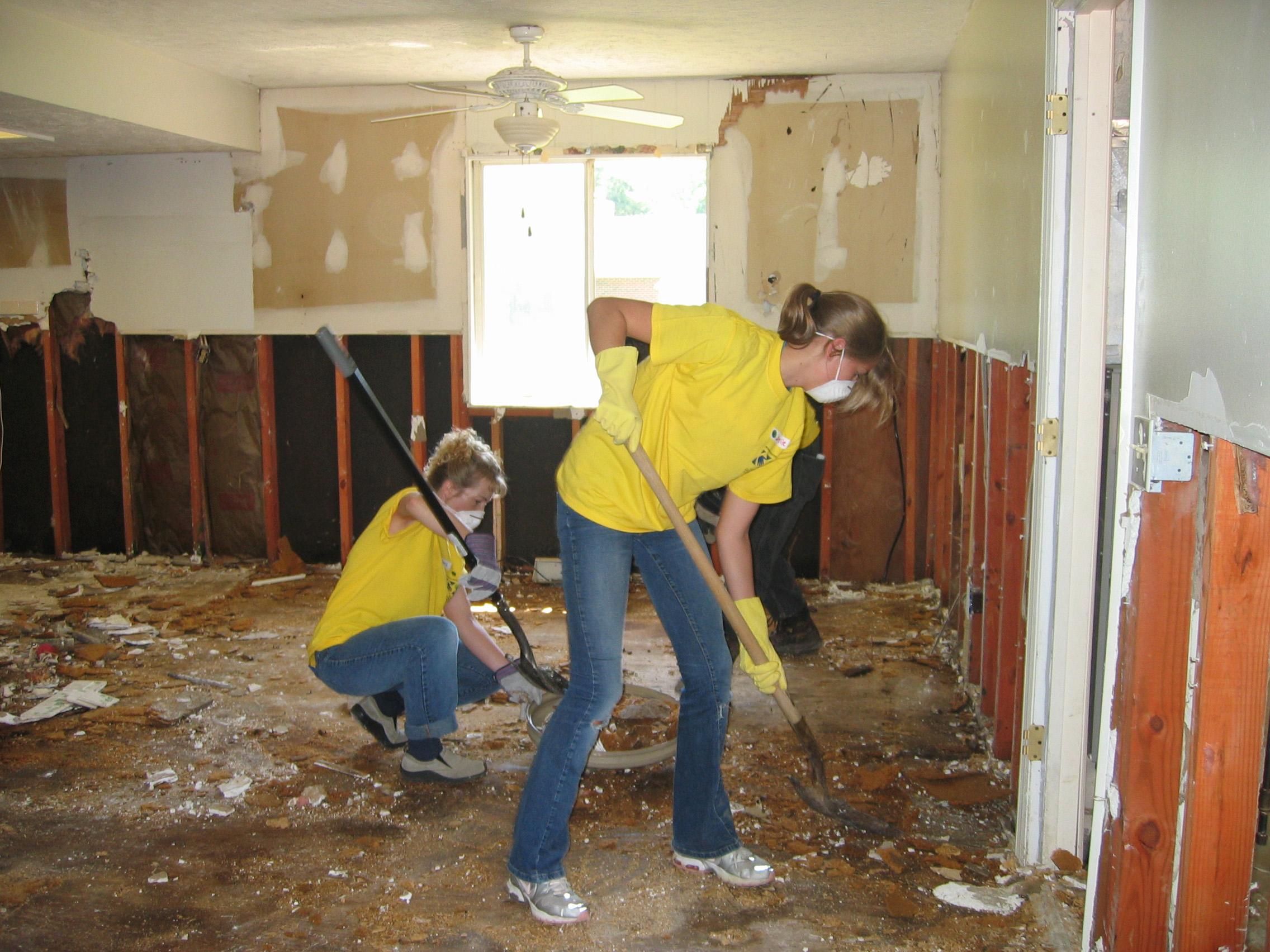 Hundreds of volunteers of The Church of Jesus Christ of Latter-day Saints adorned in yellow “Mormon Helping Hands” T-shirts spent this past weekend rendering aid to flood victims throughout southern Indiana.
