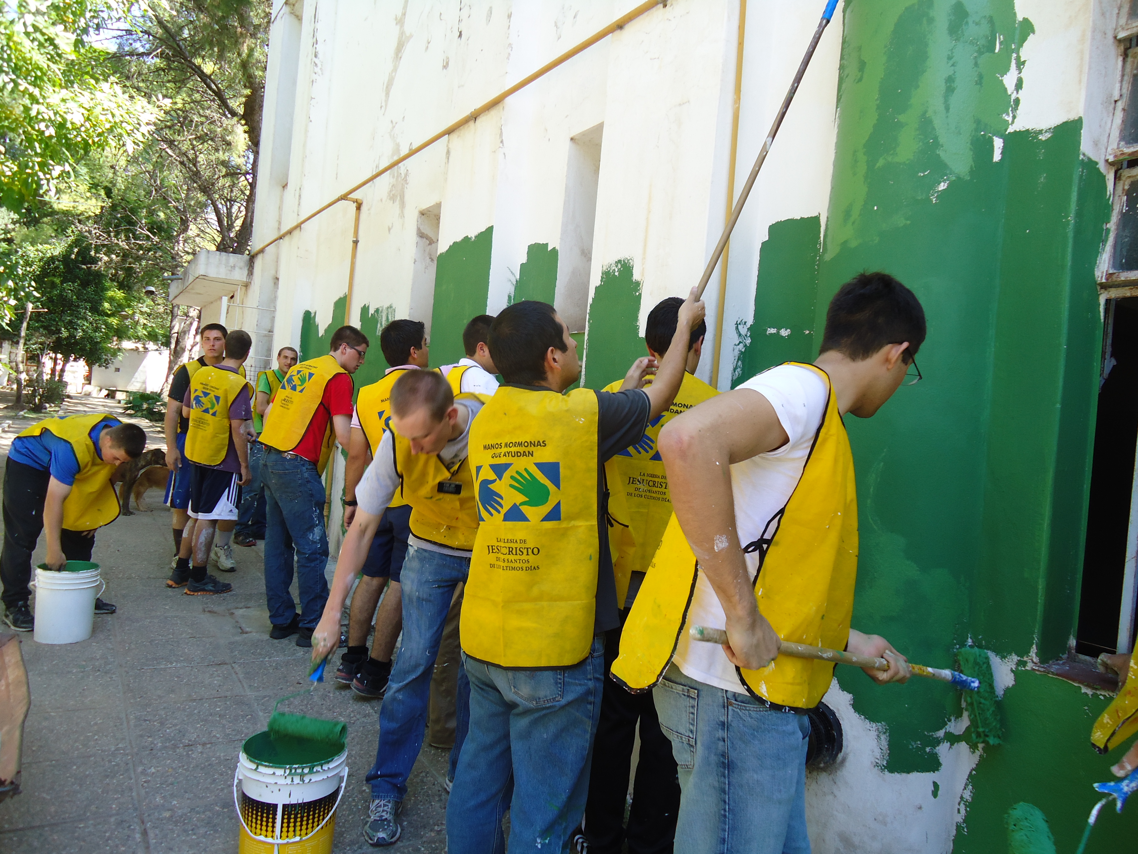 Sixty Latter-day Saint missionaries put on the yellow Mormon Helping Hands vests in March and helped paint the San Vicente Cemetery in Cordoba. They were joined by the mayor of Cordoba, Dr. Ramon Mestre, who thanked the missionaries for their willingness to reach out to the community.