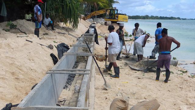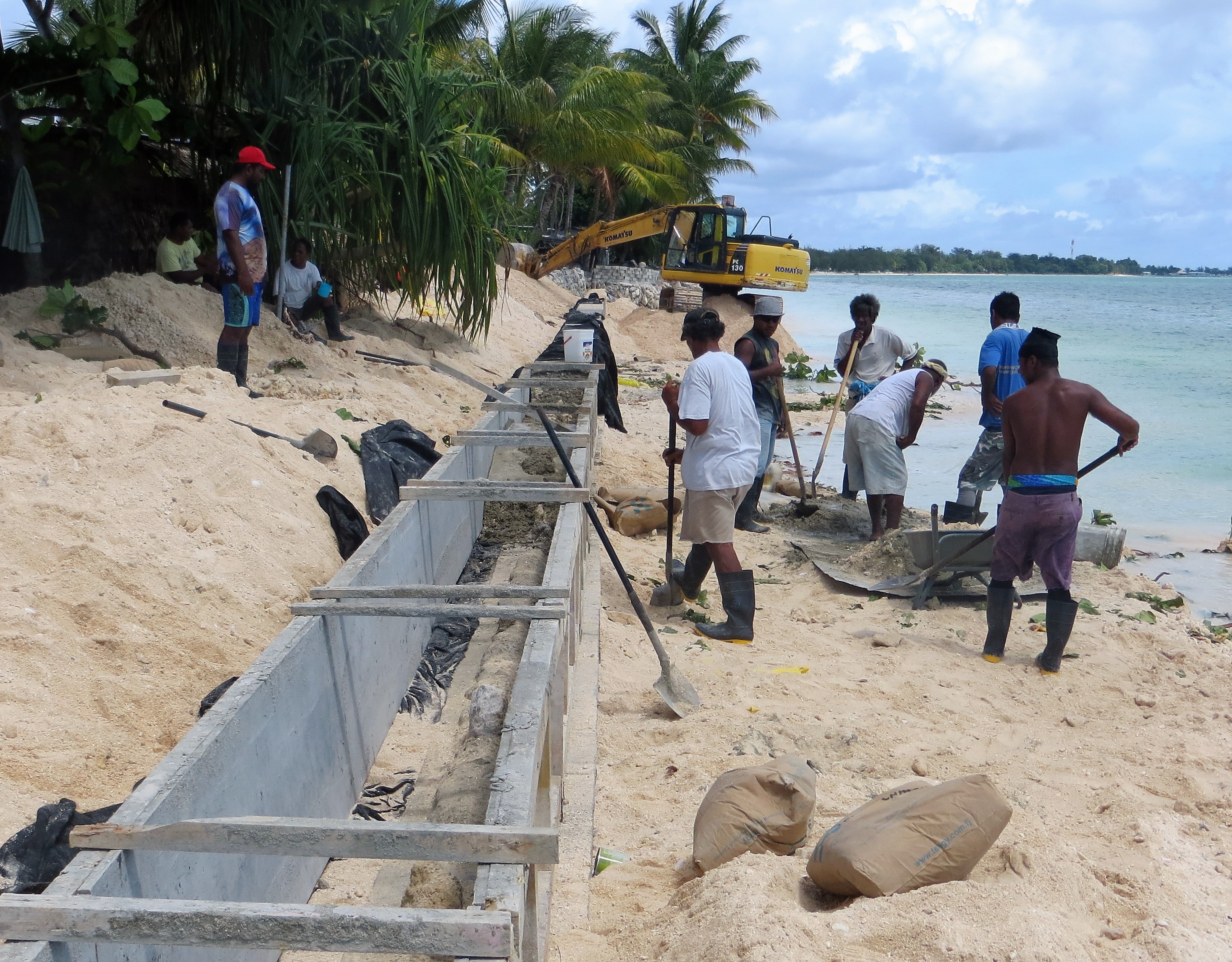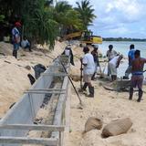 LDS Charities, the humanitarian arm of the Church, provided materials for the completion of a project of building a seawall to protect the eroding beachfront property as well as provide wheelchairs for some of the residents.