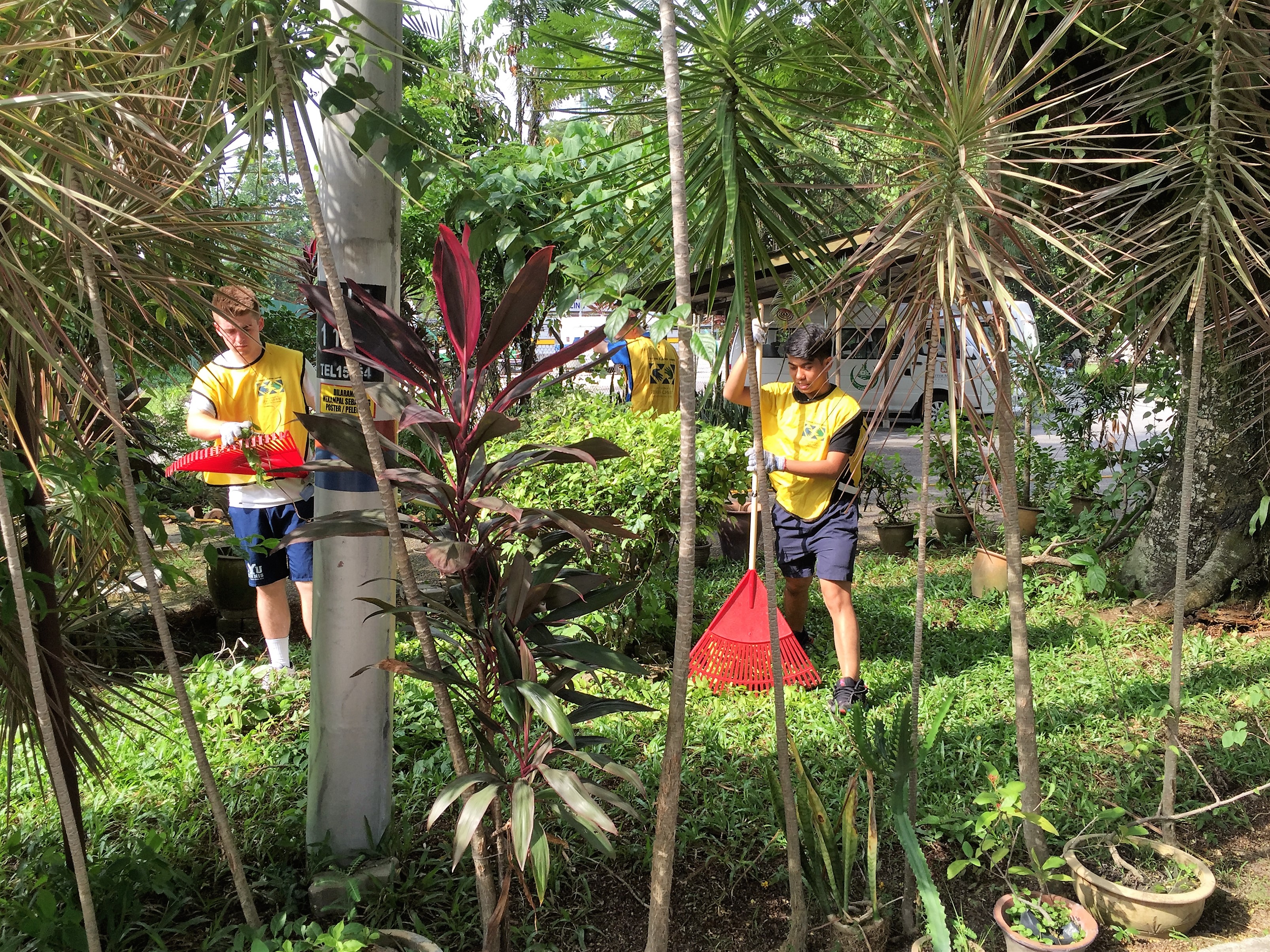 Their work was a labor of love for the Tasputra Perkims, a day care center for severely handicapped children in downtown Kuala Lumpur. They battled humidity and mosquitos to complete the job, leaving the yard tidy.