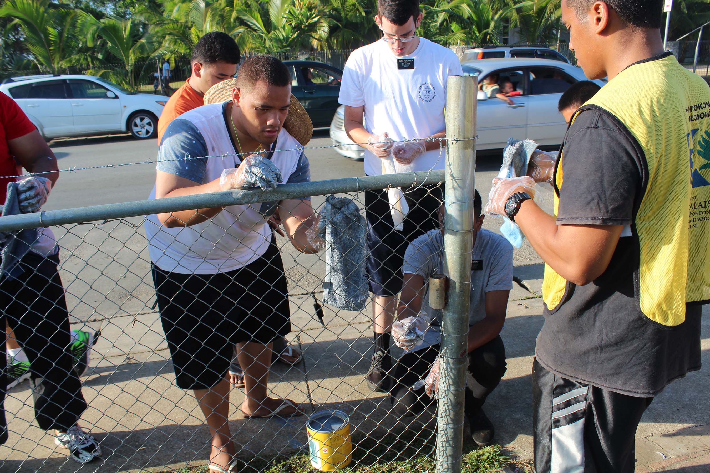 Latter-day Saints and friends of the Church in Tonga, dressed in the familiar yellow Mormon Helping Hands vests, celebrated the centennial anniversary of the Tonga Nuku'alofa Mission by performing community cleanup.