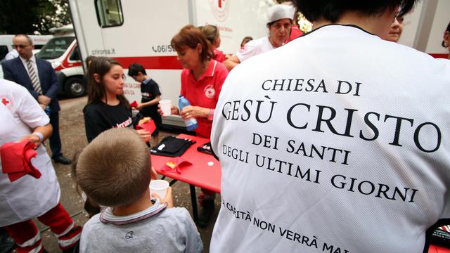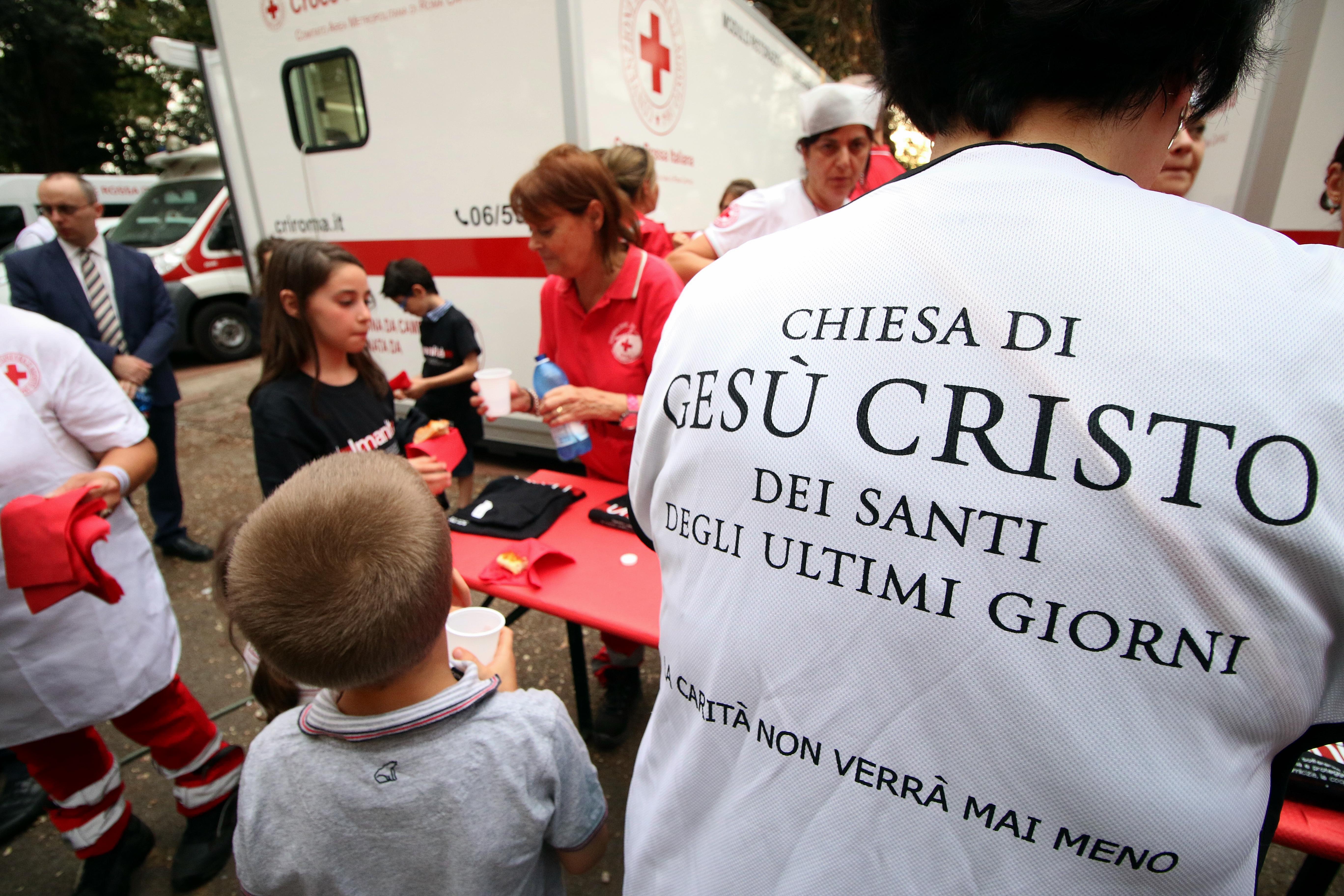 Through donations by Mormons each month in what The Church of Jesus Christ of Latter-day Saints calls fast day, enough money was collected to purchase a mobile kitchen for the Red Cross of Rome. Fast day usually includes abstaining from food and drink for two meals and donating the equivalent of the meals to the Church to help those in need.
