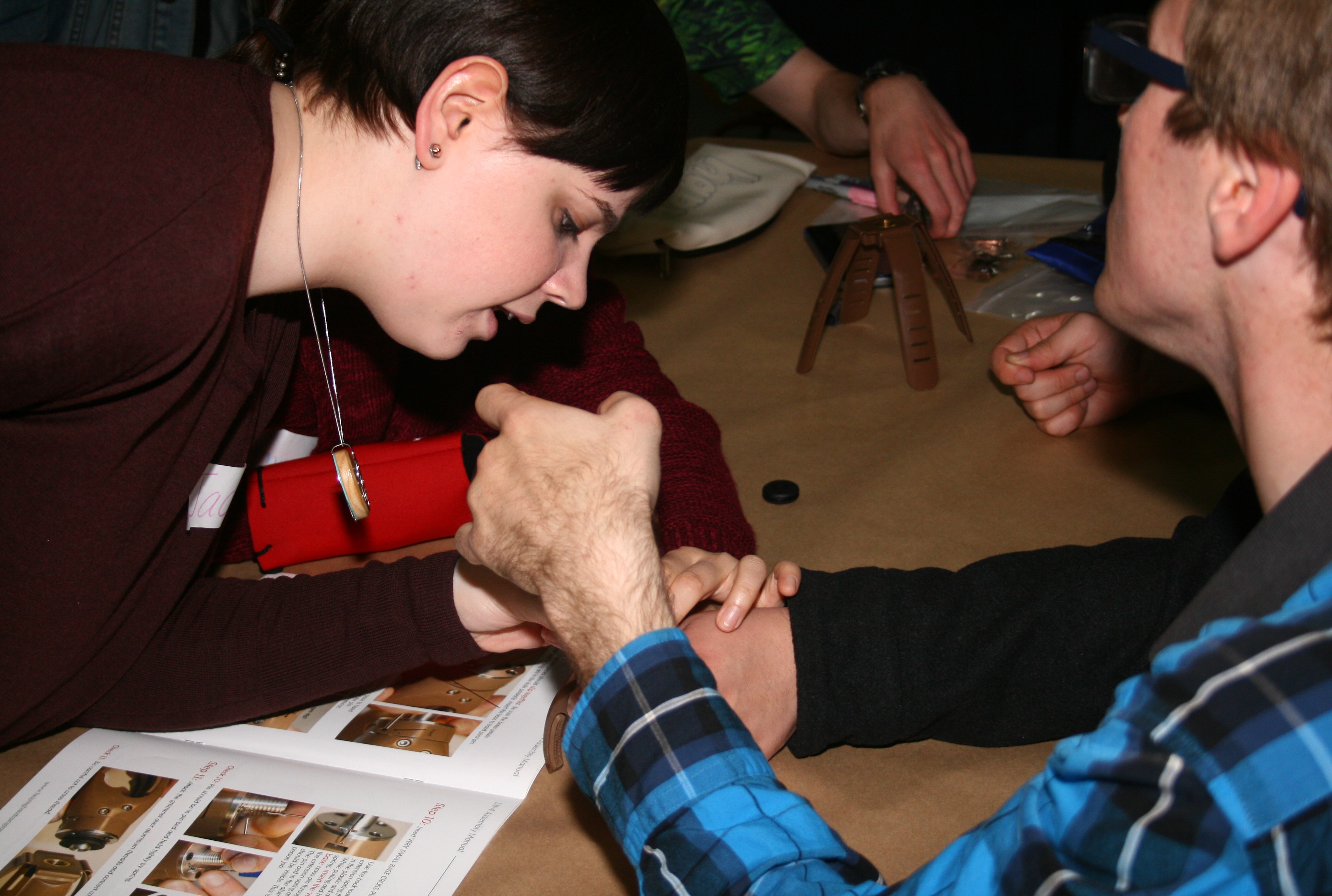 More than 150 young adults from several Christian and other faiths worked together assembling prosthetic hands for overseas victims of landmines. The humanitarian project was funded and organized by The Church of Jesus Christ of Latter-day Saints, which received the prosthetics kits through the Helping Hands program.