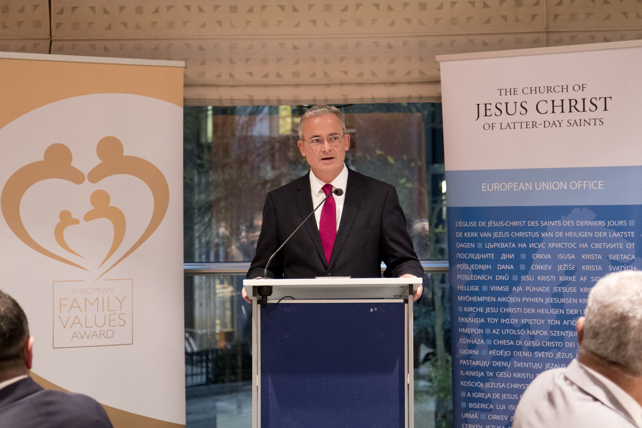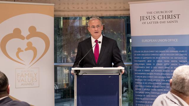 Elder Patrick Kearon of the Church’s Seventy presented the awards. The European Family Values Award in Brussels recognizes individuals and organizations whose work and influence with the institutions of the European Union have a significant impact on family life within European societies.