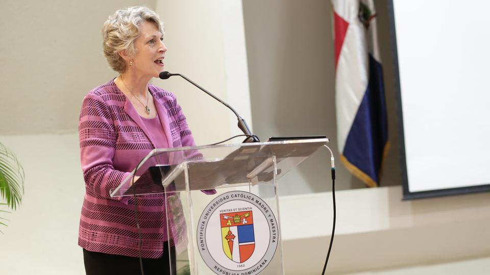 She was a speaker at a religious freedom conference sponsored by The Church of Jesus Christ of Latter-day Saints and the Pontifica Universidad Católica Madre y Maestra - PUCMM.
