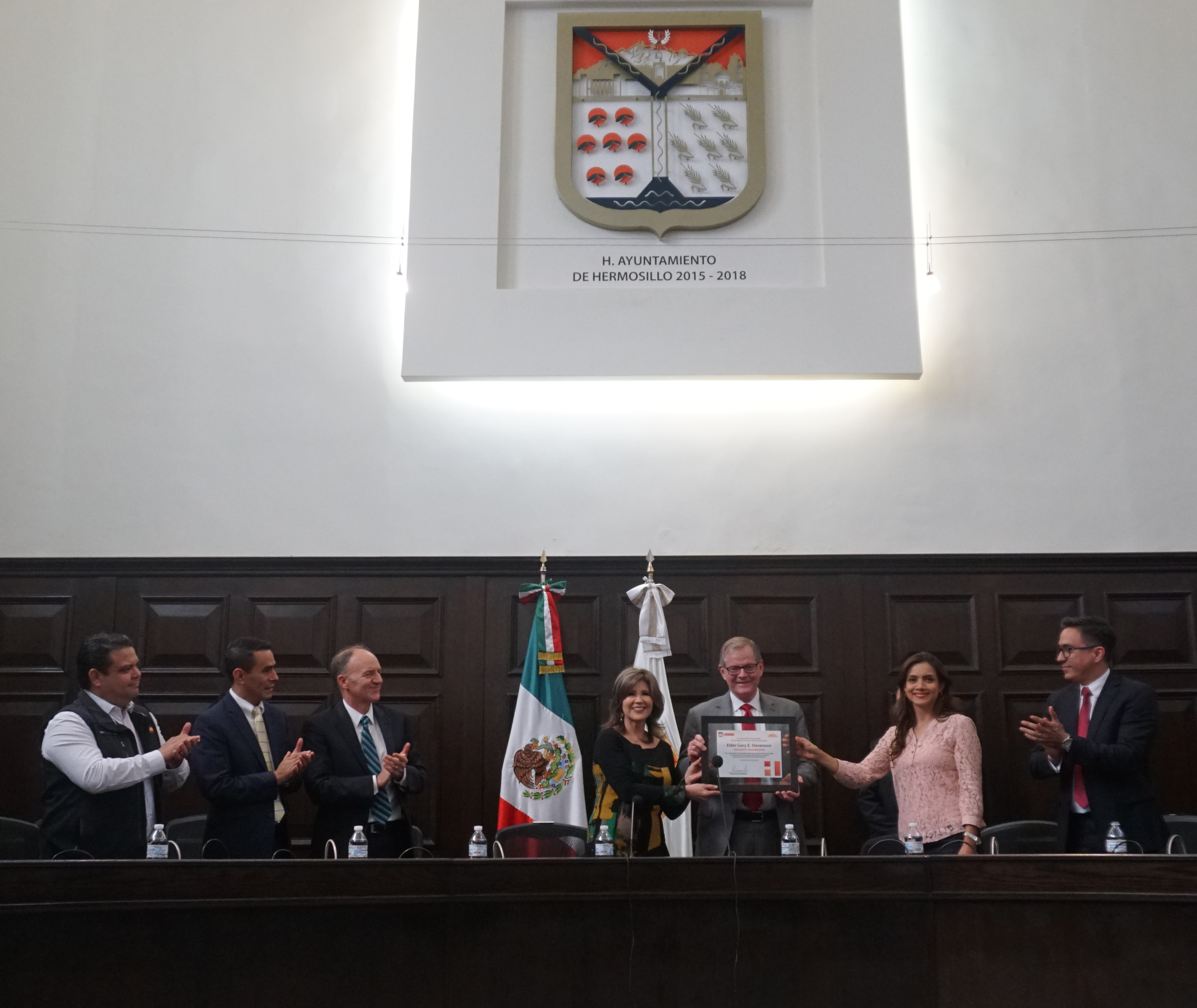 Lourdes Angelina Muñoz Fernández, the mayor of Hermosillo, Mexico, gave a warm reception to Elder Gary E. Stevenson of the Quorum of the Twelve Apostles in the apostle’s recent visit. “I am grateful for your presence,” said the mayor.