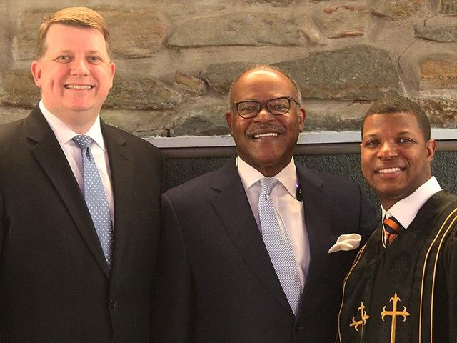 (From left to right) Baltimore Maryland stake president Michael P. Brady; Reverend Alvin C. Hathaway Sr., senior pastor of Union Baptist Church and Lt. Colonel Julian C. Gaither, chaplain, United States Air Force.