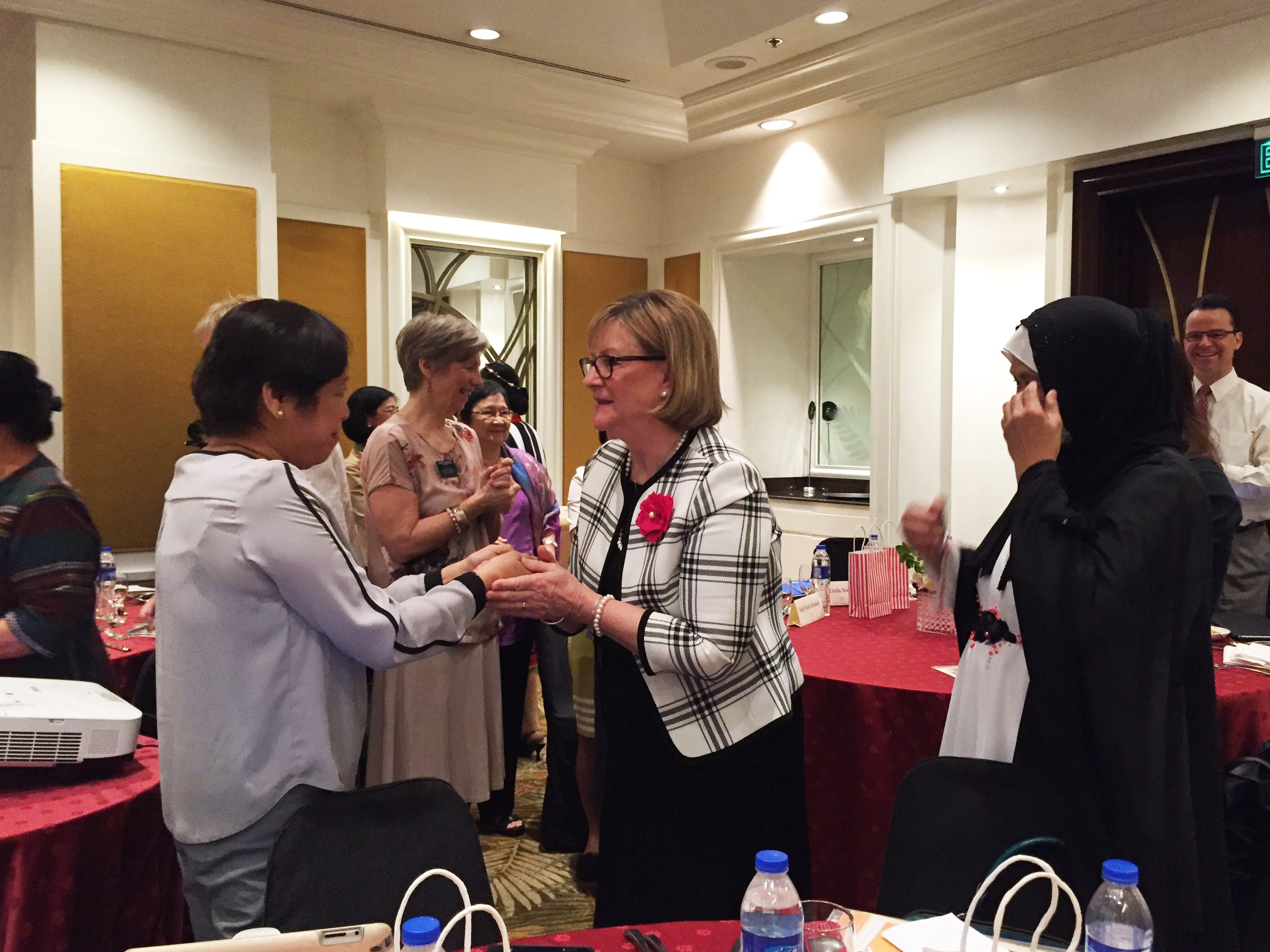 Young Women general president, Bonnie L. Oscarson and Primary first counselor Jean B. Bingham met with Philippine Senator Grace Poe about issues dealing with families, women and children.