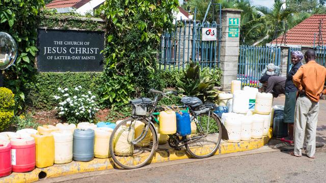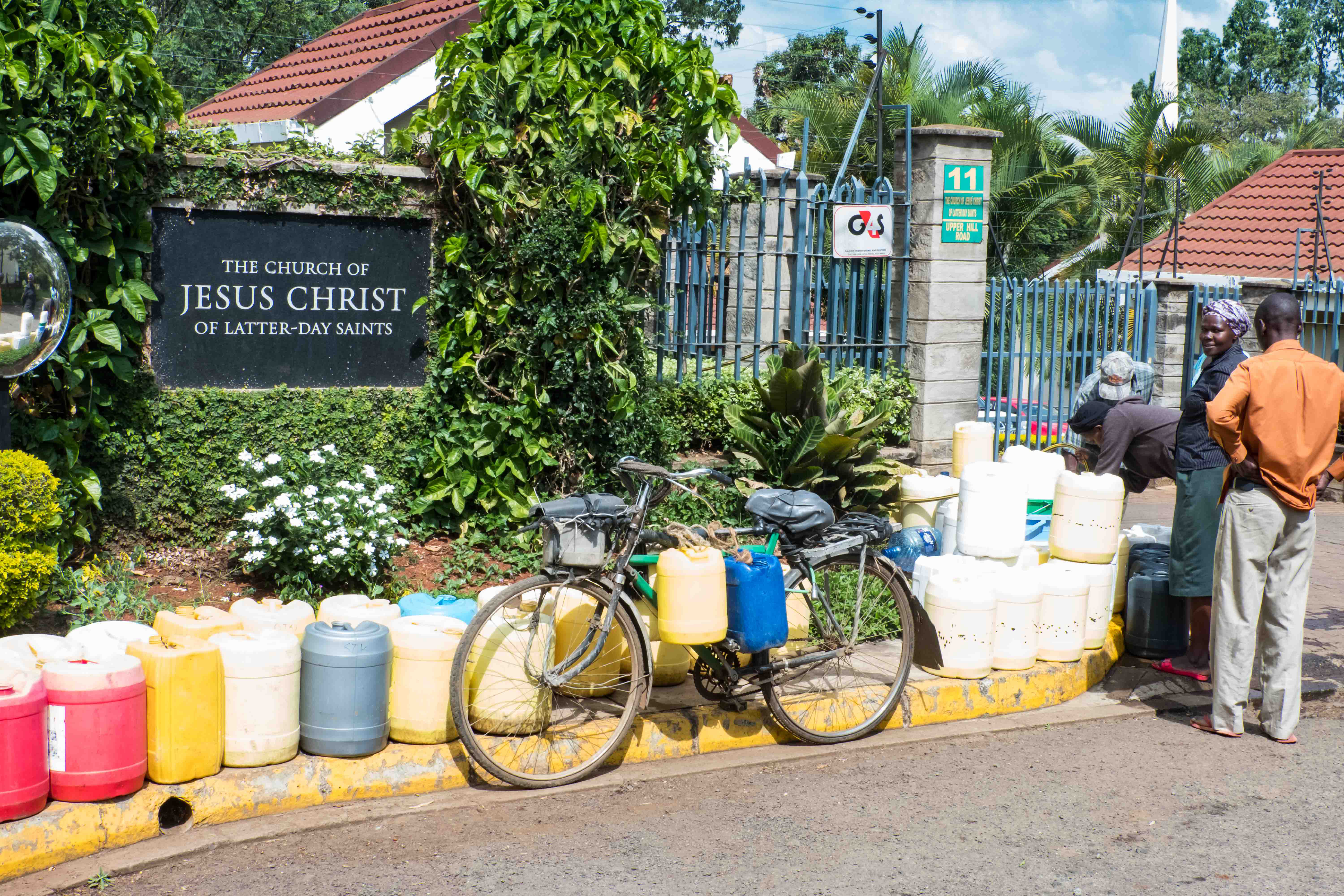 Kenya: Every Drop of Water CountsFor the past 12 years, the Church’s service center has been supplying water to residents in a community in Nairobi. People place their jerrycans neatly along the curb so they can be filled Monday, Wednesday or Friday afternoons at no charge. Two companies pay for the water residents use.