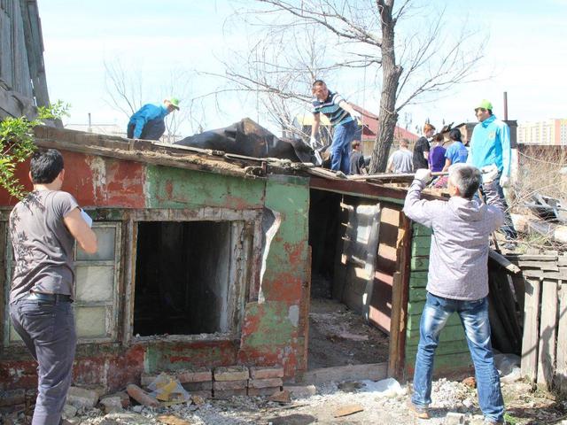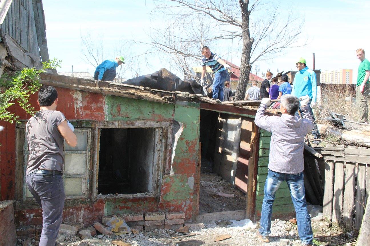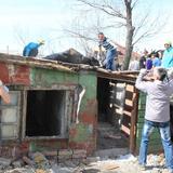 The Latter-day Saints went to work clearing the area to build a new home for Hasan Temirbaev, a survivor of having one of his lungs removed. The project not only included cleaning the area where his house once stood but also building him a new home and furnishing it as well.