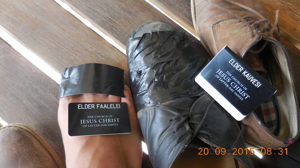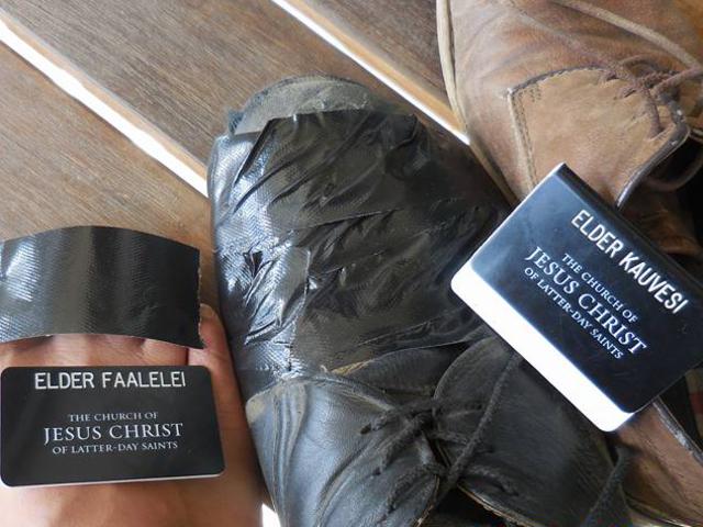 Elder Kauvesi said he started his mission with new shoes and intended to use them throughout the 24 months — and he did wear them to the end. His desire was to wear out the soles of his shoes while trying to bring souls to Christ.