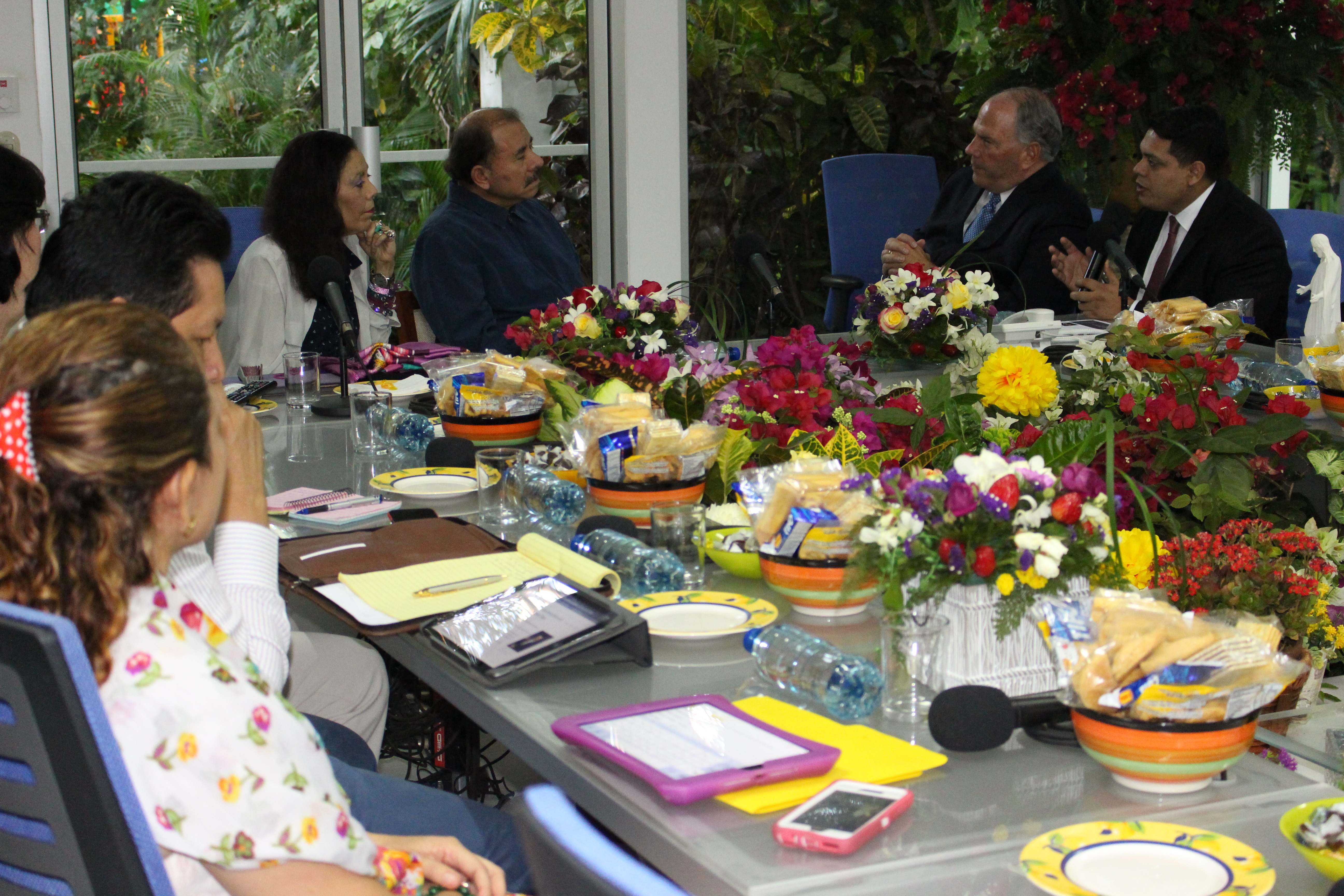In addition to speaking to the Church’s missionaries in Nicaragua, Elder Ronald A. Rasband met with the president of the Republic Daniel Ortega Saavedra; Dr. Sonia Castro, Minister of Health; Marcia Ramírez Mercado, Minister of Family, Adolescence and Children; Salvador Vanegas, presidential advisor for Education Affairs and Miriam Raudez, Minister of Education.