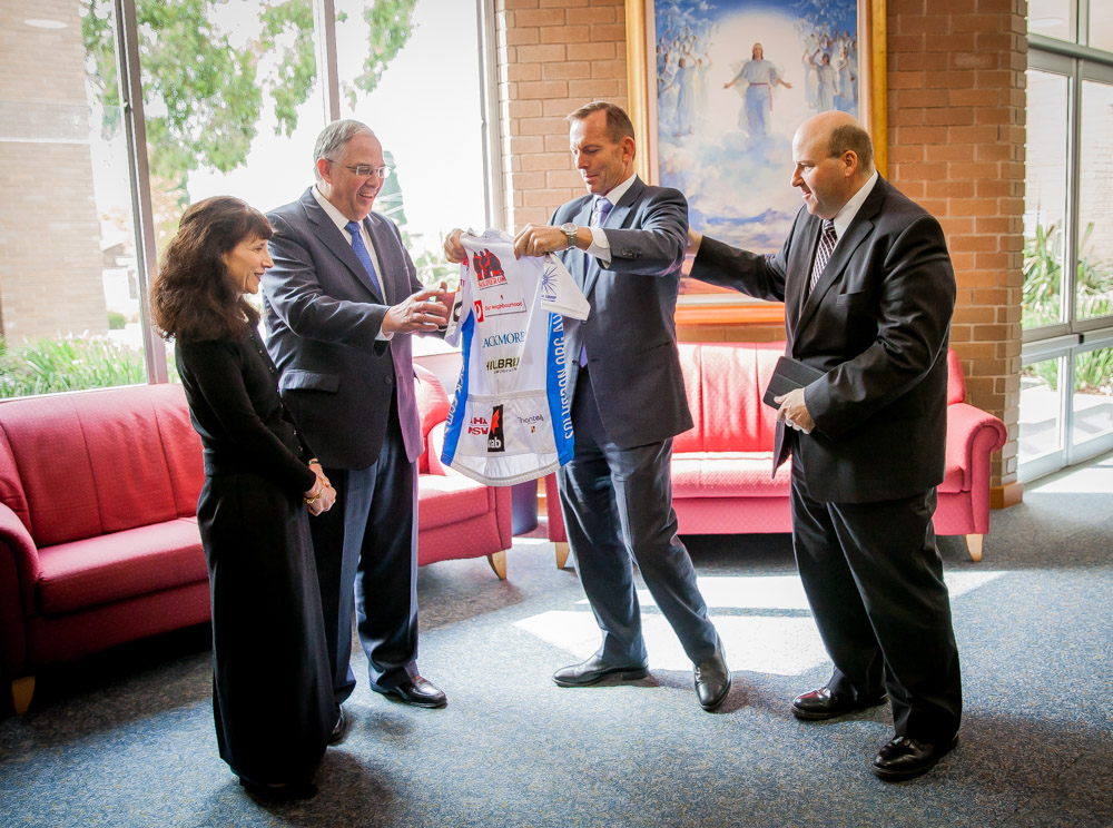Abbott spoke about his Christian experiences while studying to become a Catholic priest. Elder Andersen presented him with a statuette of the Christus. There is more on Elder Andersen’s visit on the Australia Mormon Newsroom website.