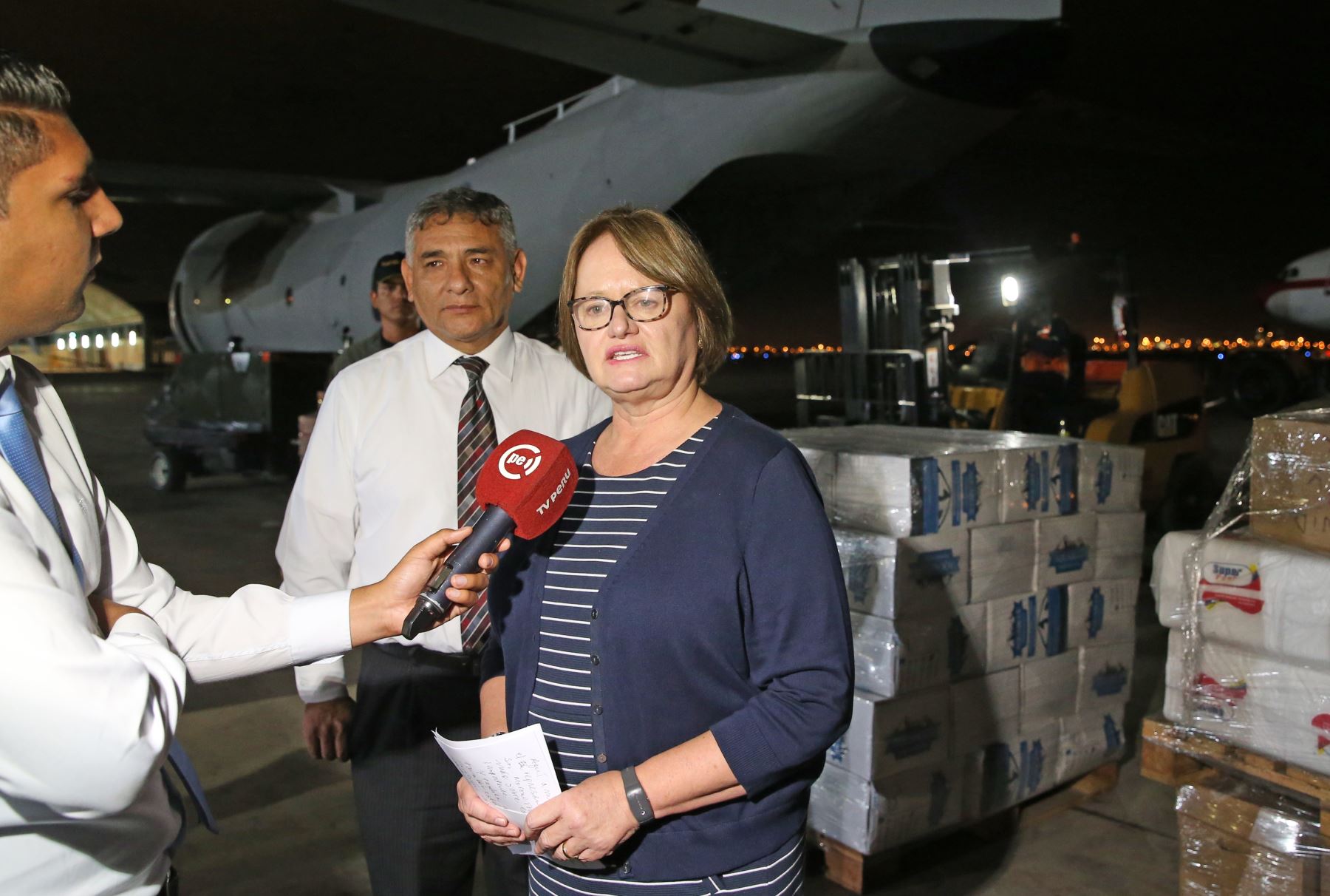 Nancy Lange Kuczynski, wife of Pedro Pablo Kuczynski, president of Peru, announced the donation of 26 tons of nonperishable food from the Church for victims of torrential rains in the northern region of Piura.