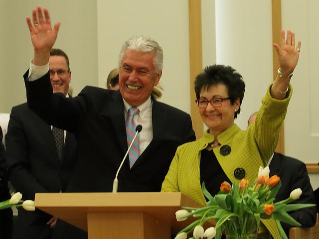 President Dieter F. Uchtdorf, second counselor in the First Presidency of The Church of Jesus Christ of Latter-day Saints; his wife, Harriet, participated in a 10-day European trip.