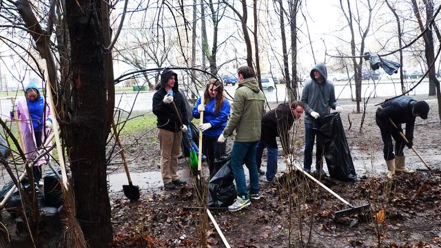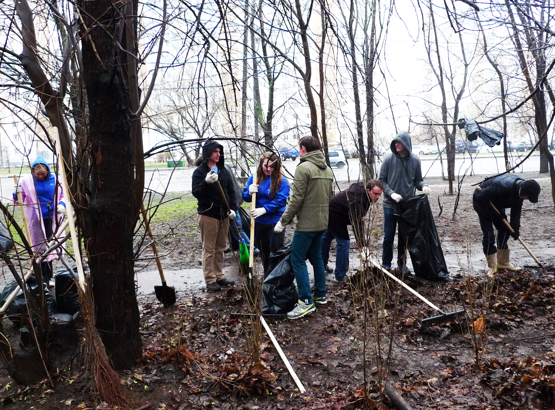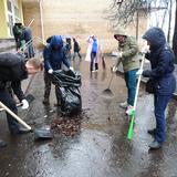 More than 60 Mormon Helping Hands volunteers devoted a day of service in the annual town cleanup in Moscow. On a soggy day, the volunteers cleaned public walkways from last fall’s leaves.