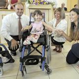 The smile on two-year-old Victoria Carregal’s face says it all. She is happy to receive her very own wheelchair from the Humanitarian Aid program of The Church of Jesus Christ of Latter-day Saints. She was one of 200 people to receive a wheelchair recently.