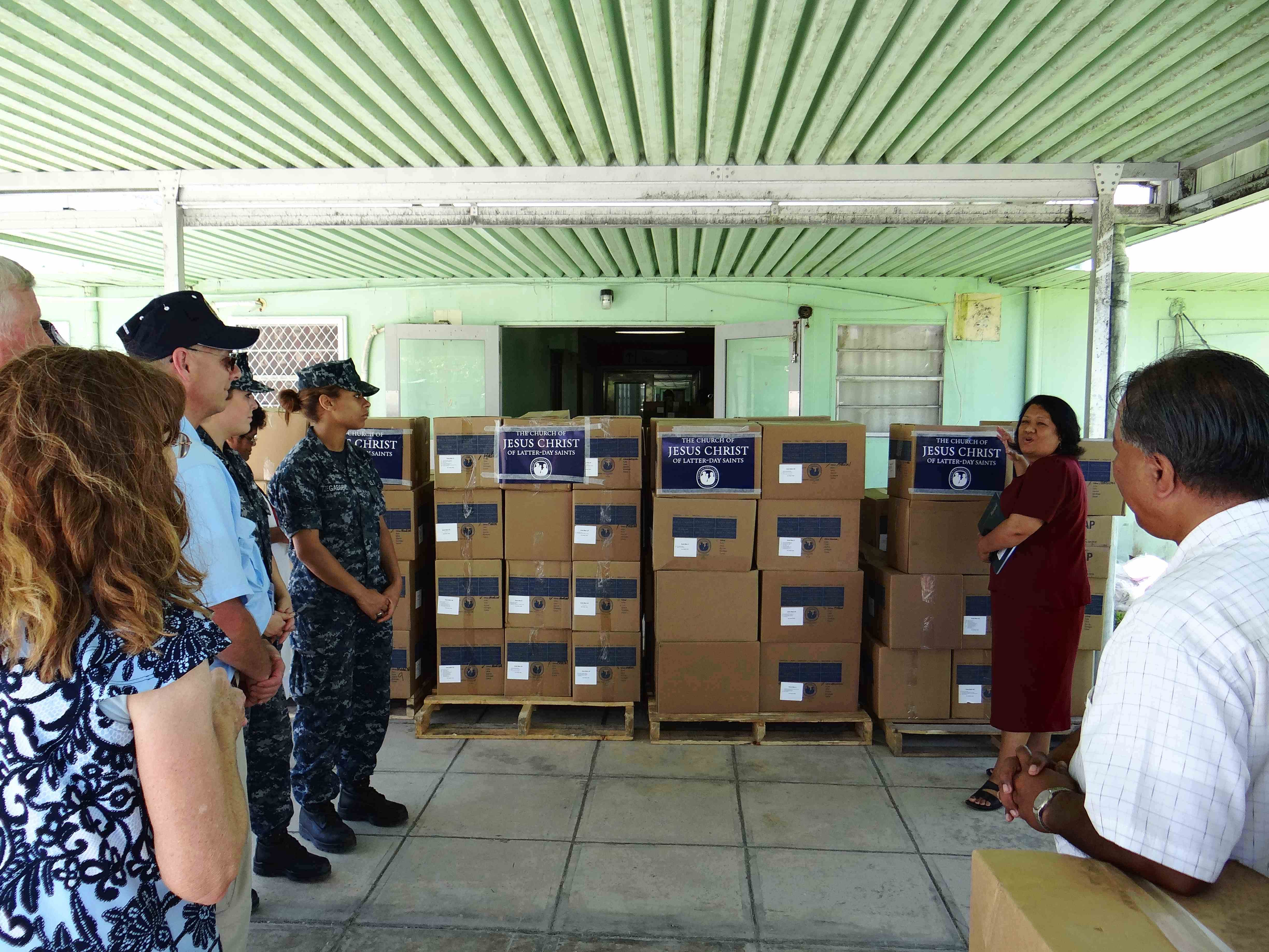 LDS Charities of The Church of Jesus Christ of Latter-day Saints and the crew of the USS Pearl Harbor delivered 26 boxes of medical and hygiene supplies to the Majuro Hospital in the Marshall Islands in July.