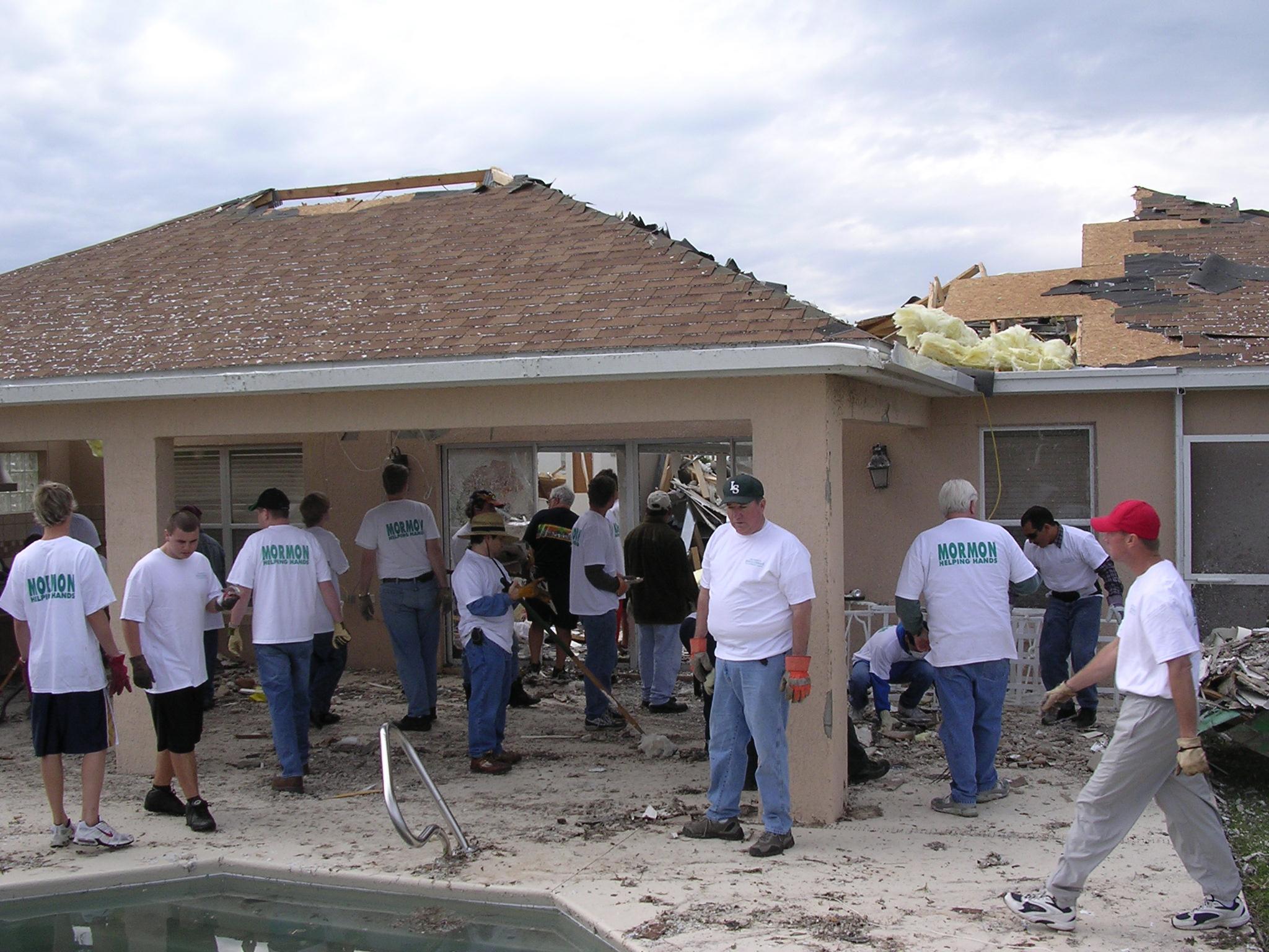 Within 24 hours after three tornados touched down in central Florida, 400 members of The Church of Jesus Christ of Latter-day Saints gathered at an Orlando church building to receive instructions on where they would spend the day cleaning and removing debris.