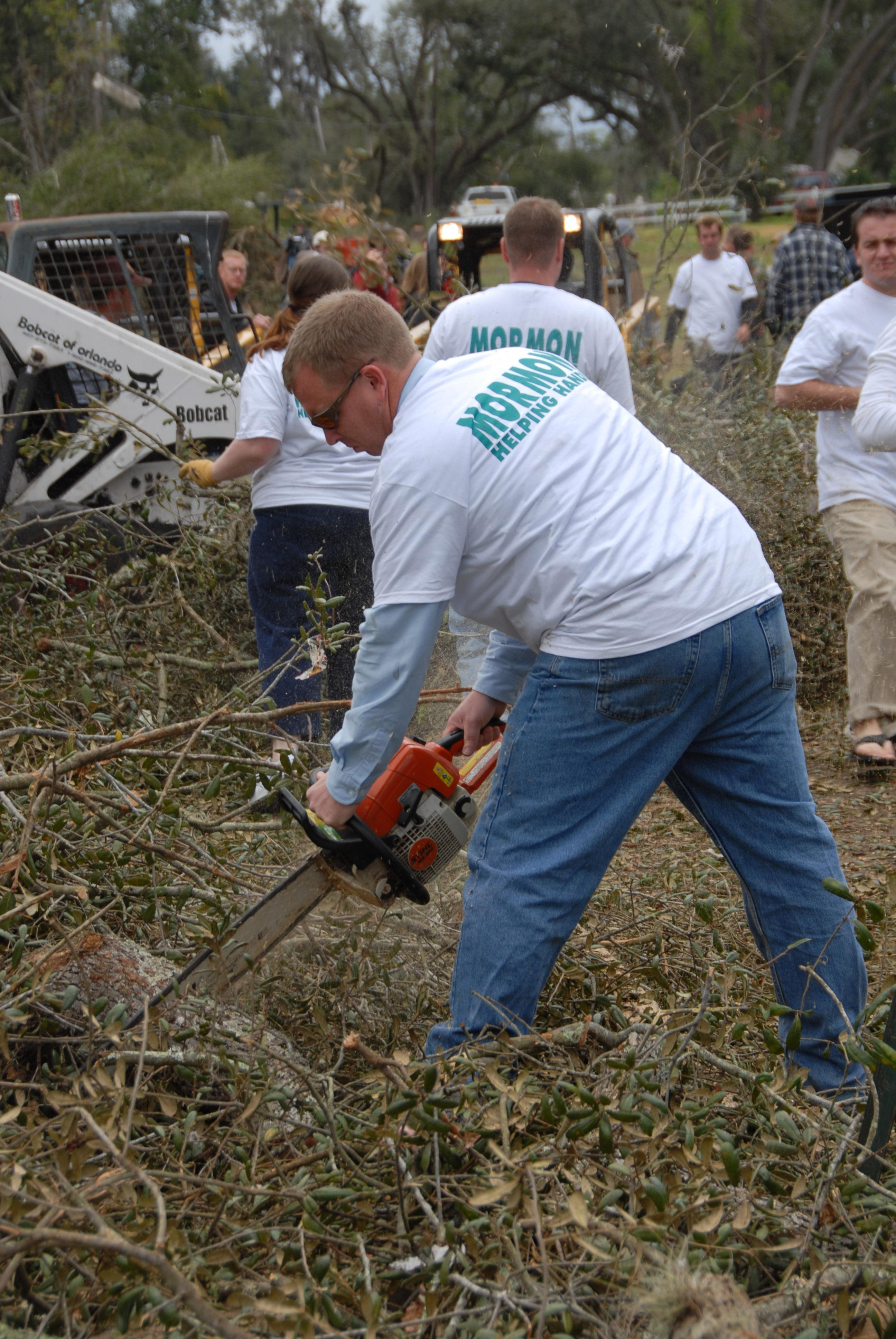 In another part of the city, 100 Mormons gathered to help clean up the Deland area.