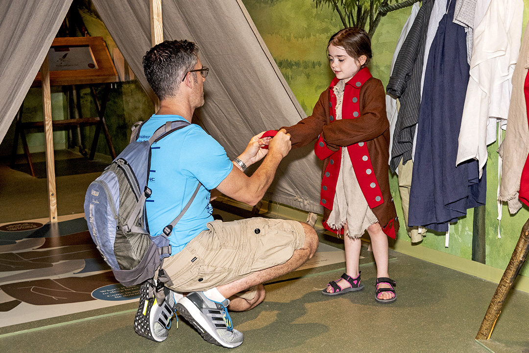 Turdo said the experience includes interactive computers and props representing the 18th century, such as period clothing, tea ware and reproduction hymnals. “They do spend time almost equally with digital interactive and physical, hands‑on interactives. … I think kids could spend several hours down here.”