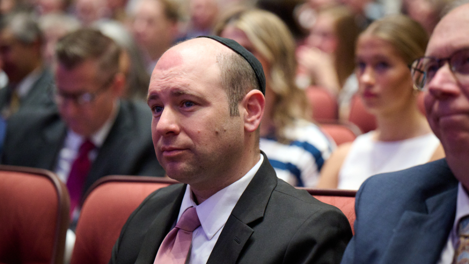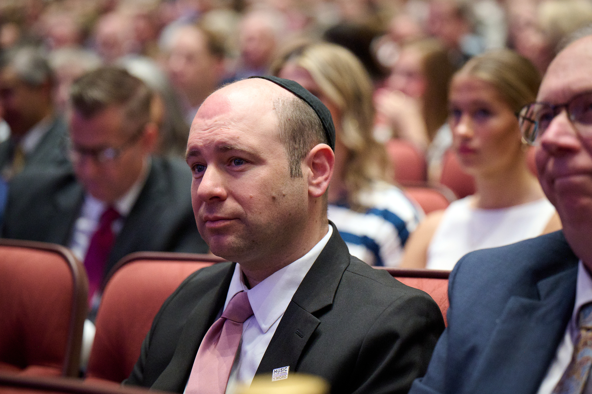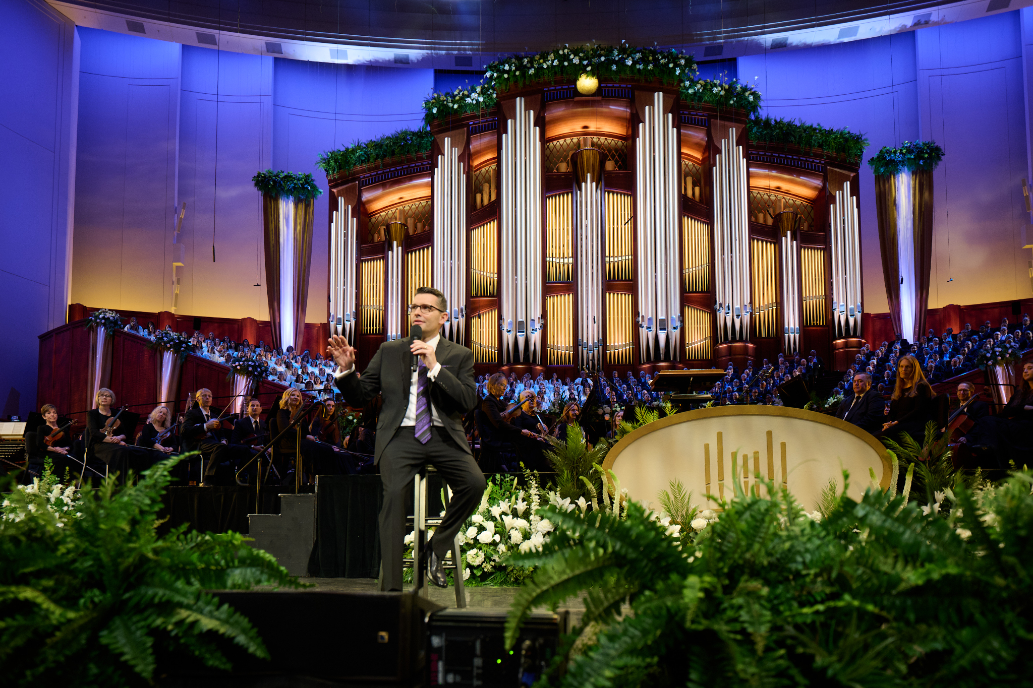 Rabbi Jarrod R. Grover, Senior Rabbi of Beth Tikvah Synagogue in Toronto, is invited to sing with the Tabernacle Choir on Temple Square during their rehearsal on July 10, 2025, in the Conference Center in Salt Lake City, Utah.2025 by Intellectual Reserve, Inc. All rights reserved.Rabbi Grover wrote Porter in March after the latter invited viewers to share their experiences with the show. The rabbi, who has watched the program for the past three years after being introduced to it by missionaries, thought he would never see “Music & the Spoken Word” in person because of his busy schedule and because of the proximity of the Church’s general conferences to Passover and the High Holy Days of the fall.