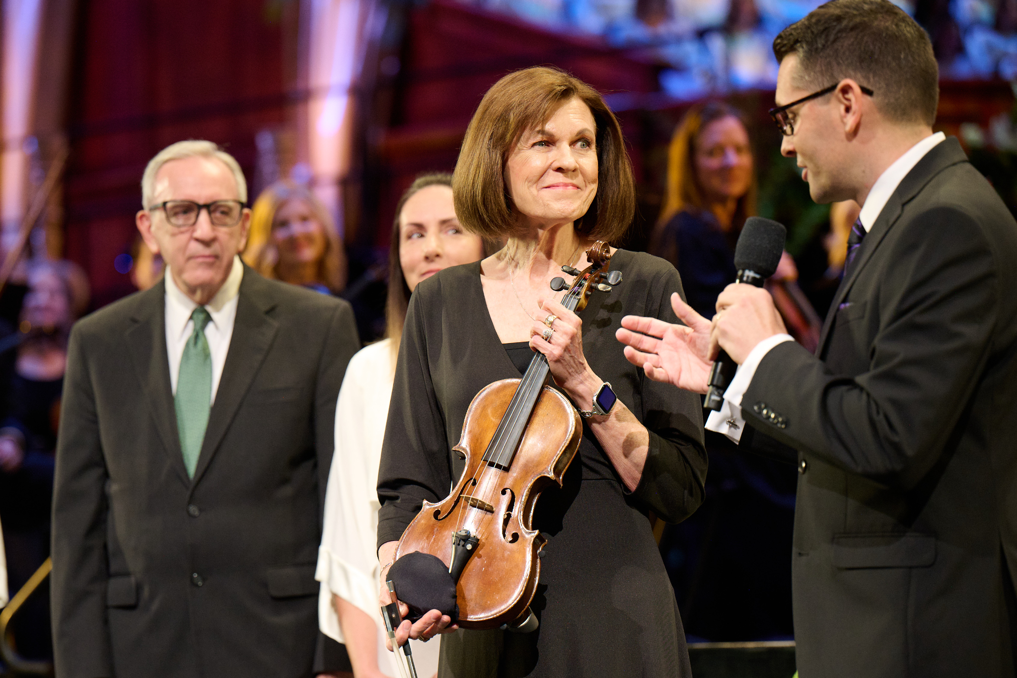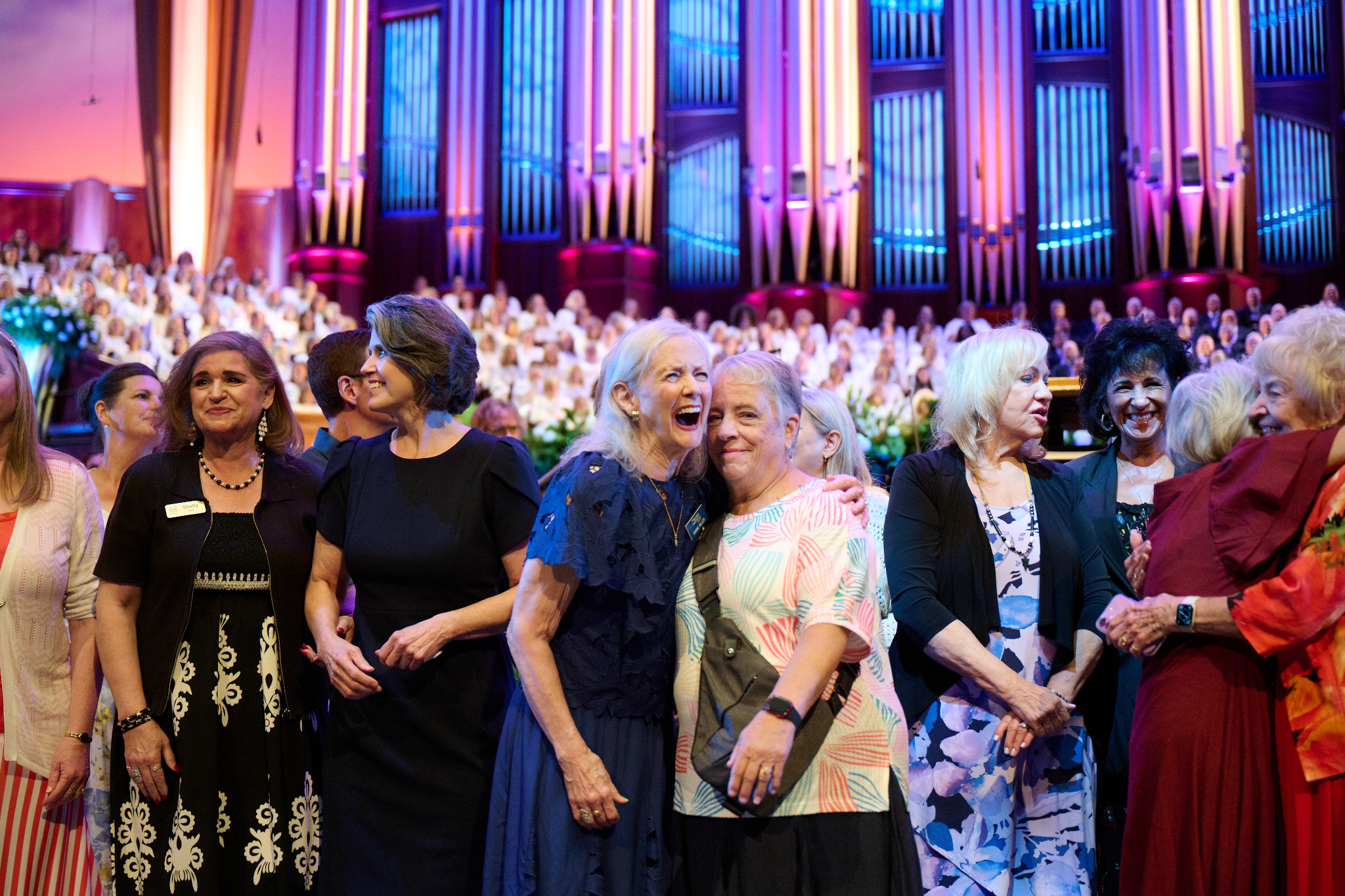Jane Hillier Clark and her family are recognized for their legacy with the Tabernacle Choir organization as part of the pre-show celebration of the 5,000th episode of “Music & the Spoken Word” at the Conference Center in Salt Lake City, Utah, on Sunday, July 13, 2025.2025 by Intellectual Reserve, Inc. All rights reserved.“It’s kind of all we’ve ever known,” Clark said, explaining that she grew up practically in the Salt Lake Tabernacle because her mother was a Choir member for over 26 years. This upbringing fostered “a love for the Choir, for being in that historic [place], a love for music and for serving, and it means a lot.”