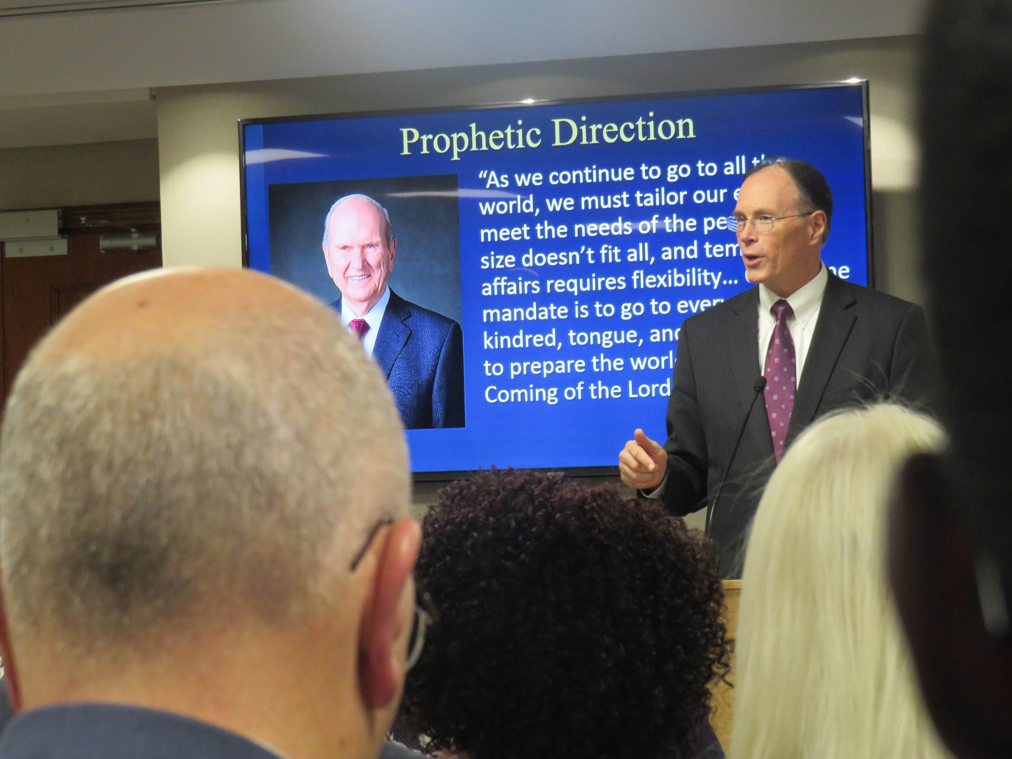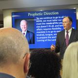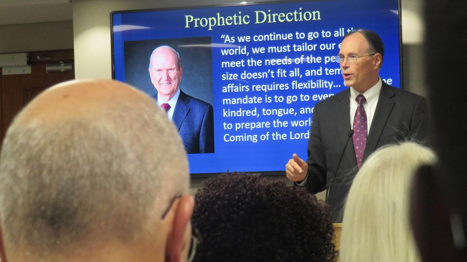Elder S. Mark Palmer, Africa Southeast Area president and Marius von Mollendorff, director of temporal affairs for the Africa Southeast Area, also spoke at the meeting. The announcement was broadcast to Church employees and volunteers in Nairobi, Kenya, and Kinshasa, Democratic Republic of the Congo.