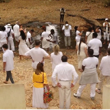 During one excursion, participants dressed in white and walked to the “last bath” at the Assin Manso Ancestral Slave River in Ghana, where enslaved people were forcefully bathed before making the long trek to the Cape Coast Castles slave dungeons, from which they exited, stripped of their identities.