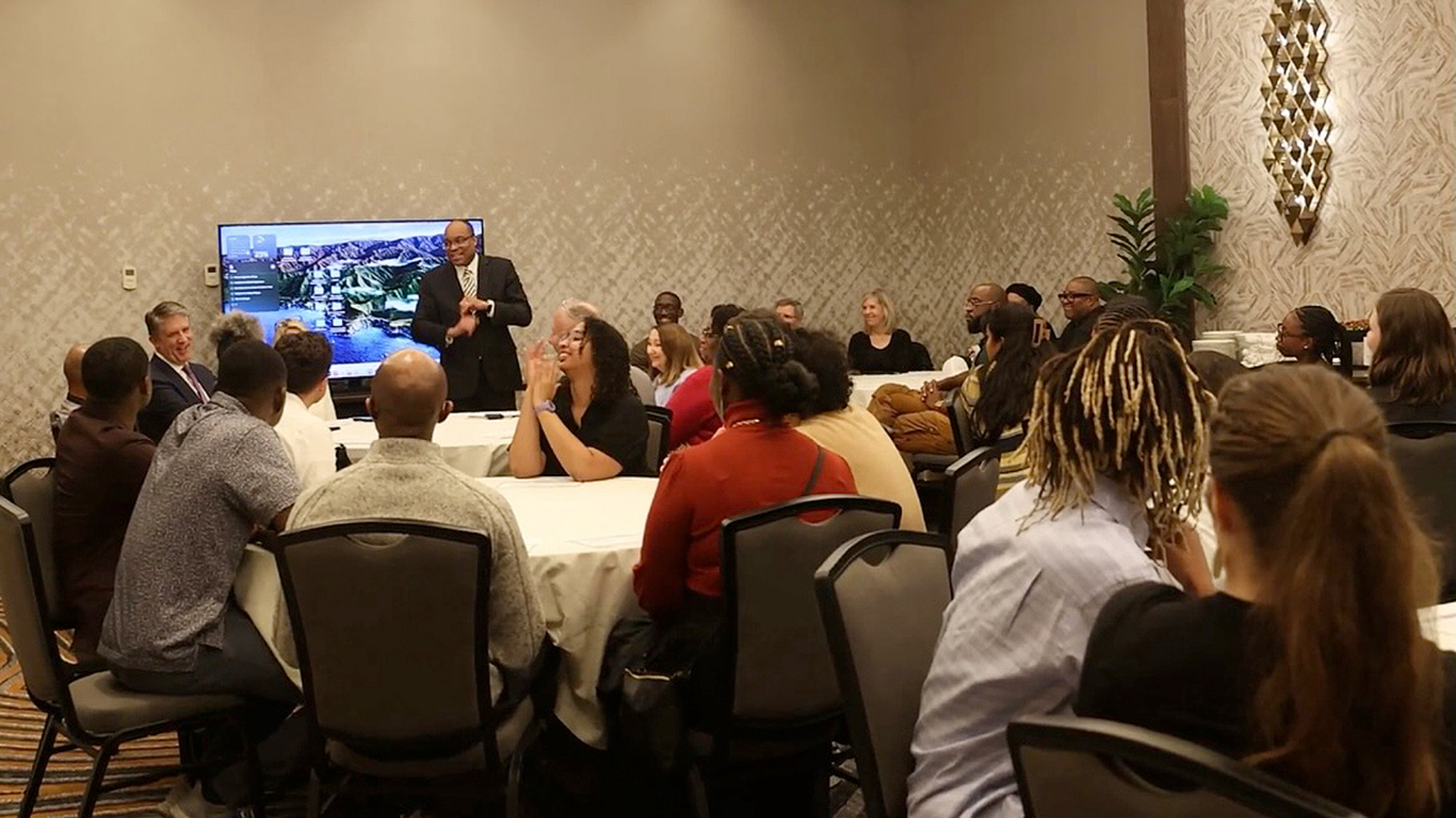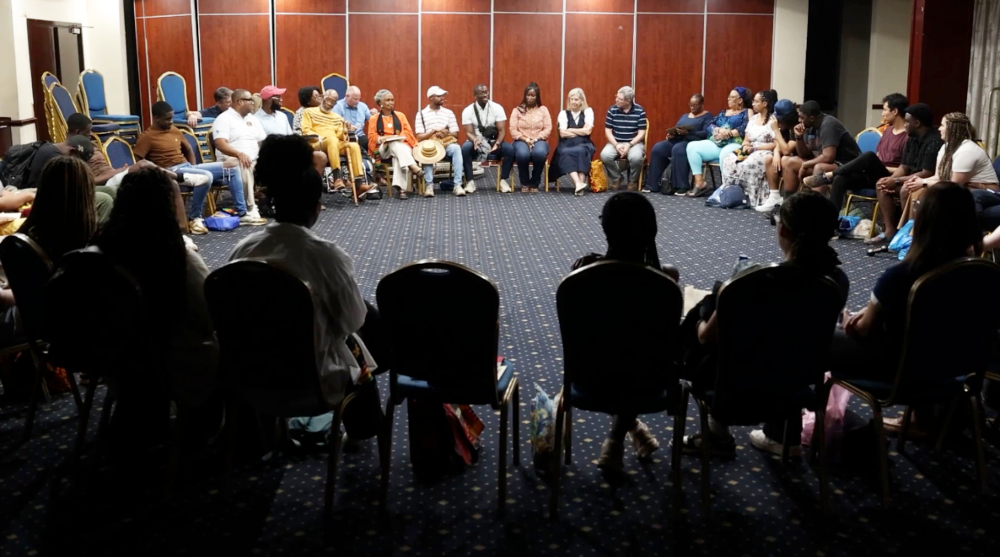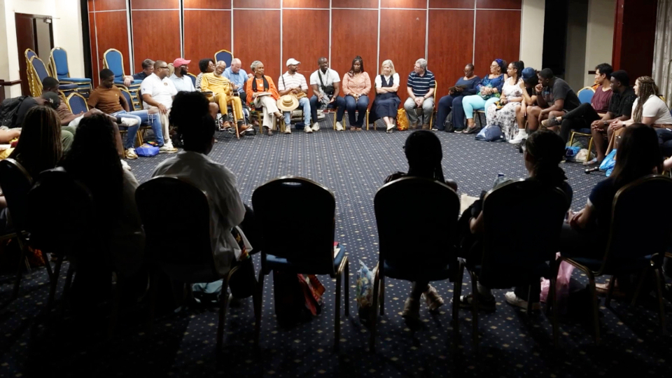 Reverend Dr. Amos C. Brown, pastor of San Francisco’s Third Baptist Church and member of the NAACP Board of Directors, speaks to participants at the introductory gathering in New York City for the 10-day fellowship to Ghana from December 28, 2024, to January 7, 2025. Photo is a screenshot from the documentary about the experience.2025 by Intellectual Reserve, Inc. All rights reserved.