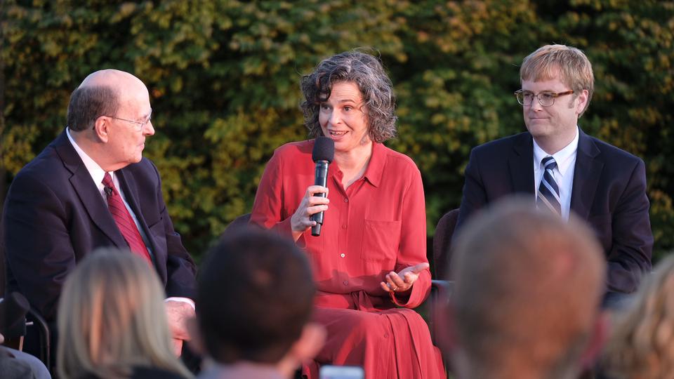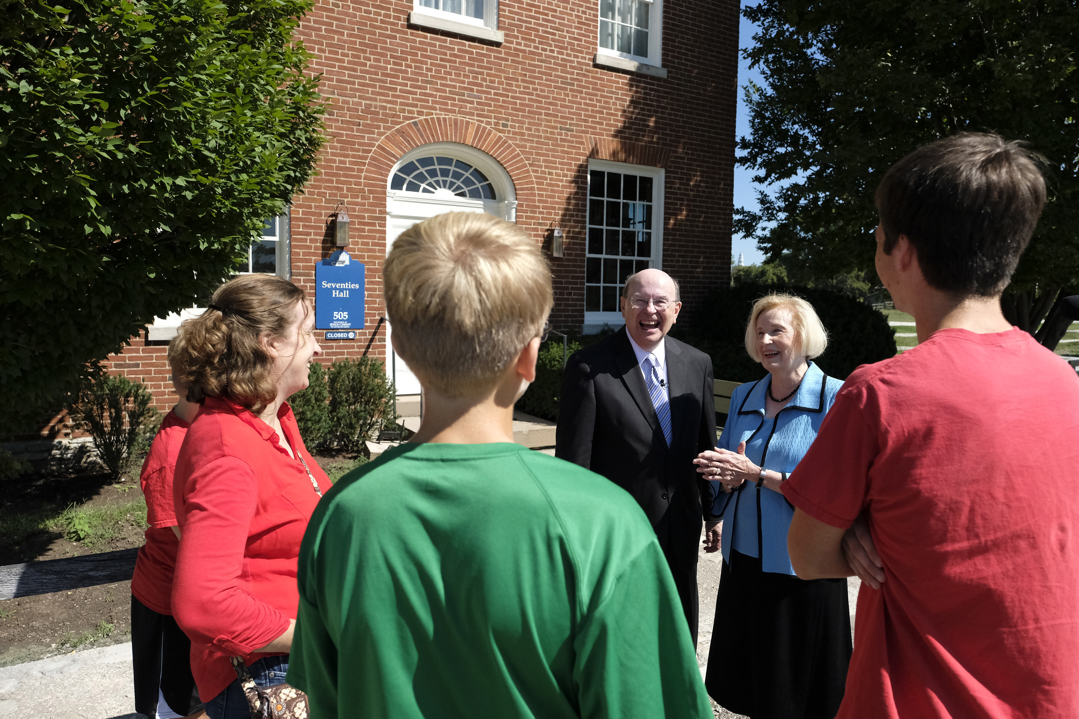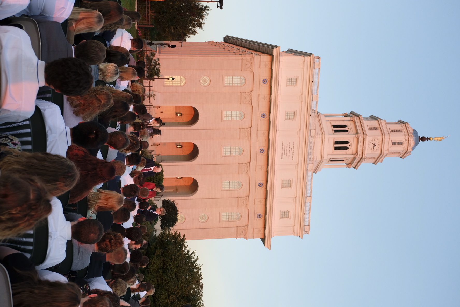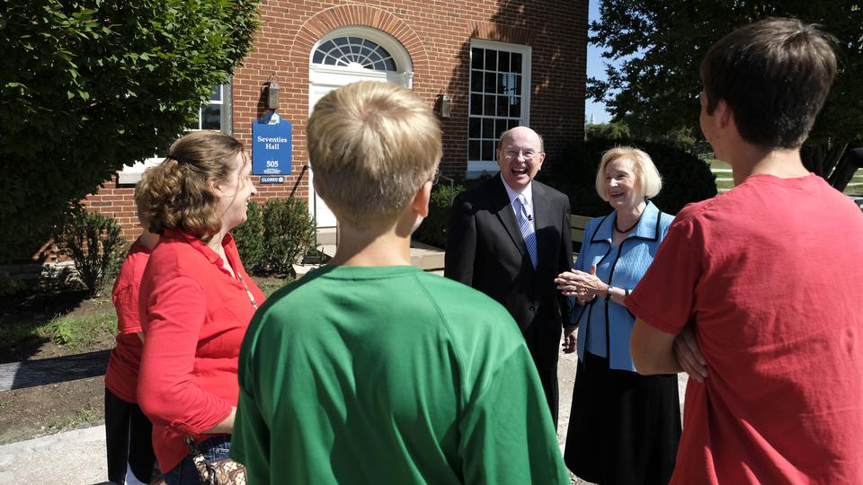 With the majestic Nauvoo Illinois Temple as a backdrop, Elder Quentin L. Cook of the Quorum of the Twelve Apostles hosted an engaging discussion on the history of The Church of Jesus Christ of Latter-day Saints with a group of more than 250 young adults in a live Face to Face devotional Sunday evening, September 9, 2018, broadcast throughout the world. They were outdoors in the historic location along the shores of the Mississippi River.
