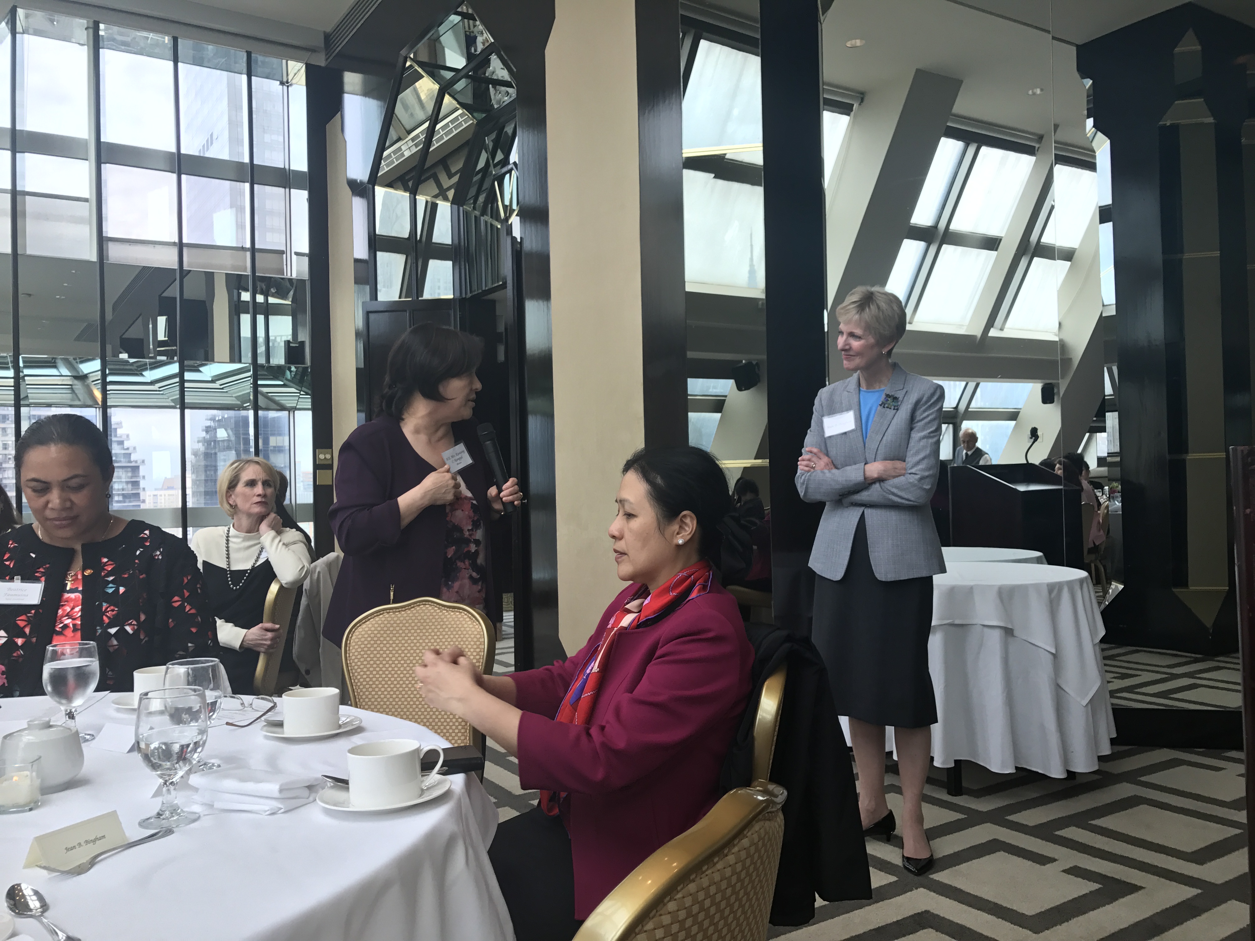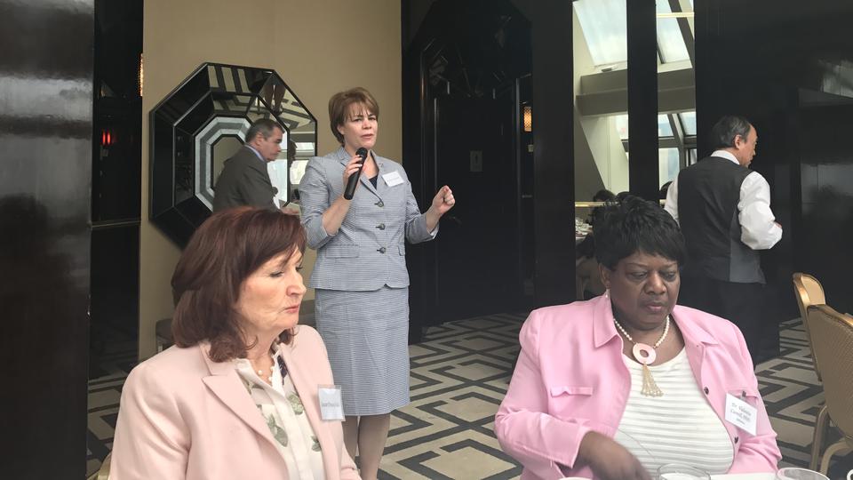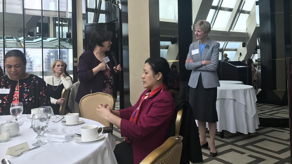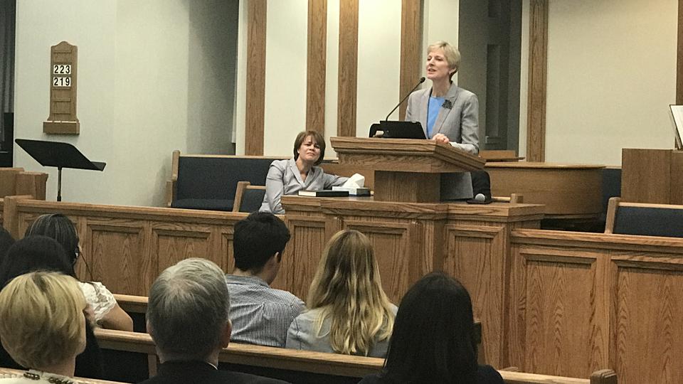 On Wednesday, the Relief Society leaders attended a diplomatic women’s luncheon and traveled across the Hudson River to speak at a gathering of Latter-day Saints and invited guests in Newark, New Jersey.
