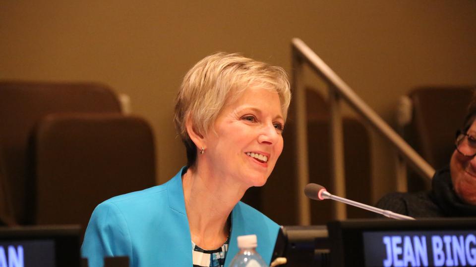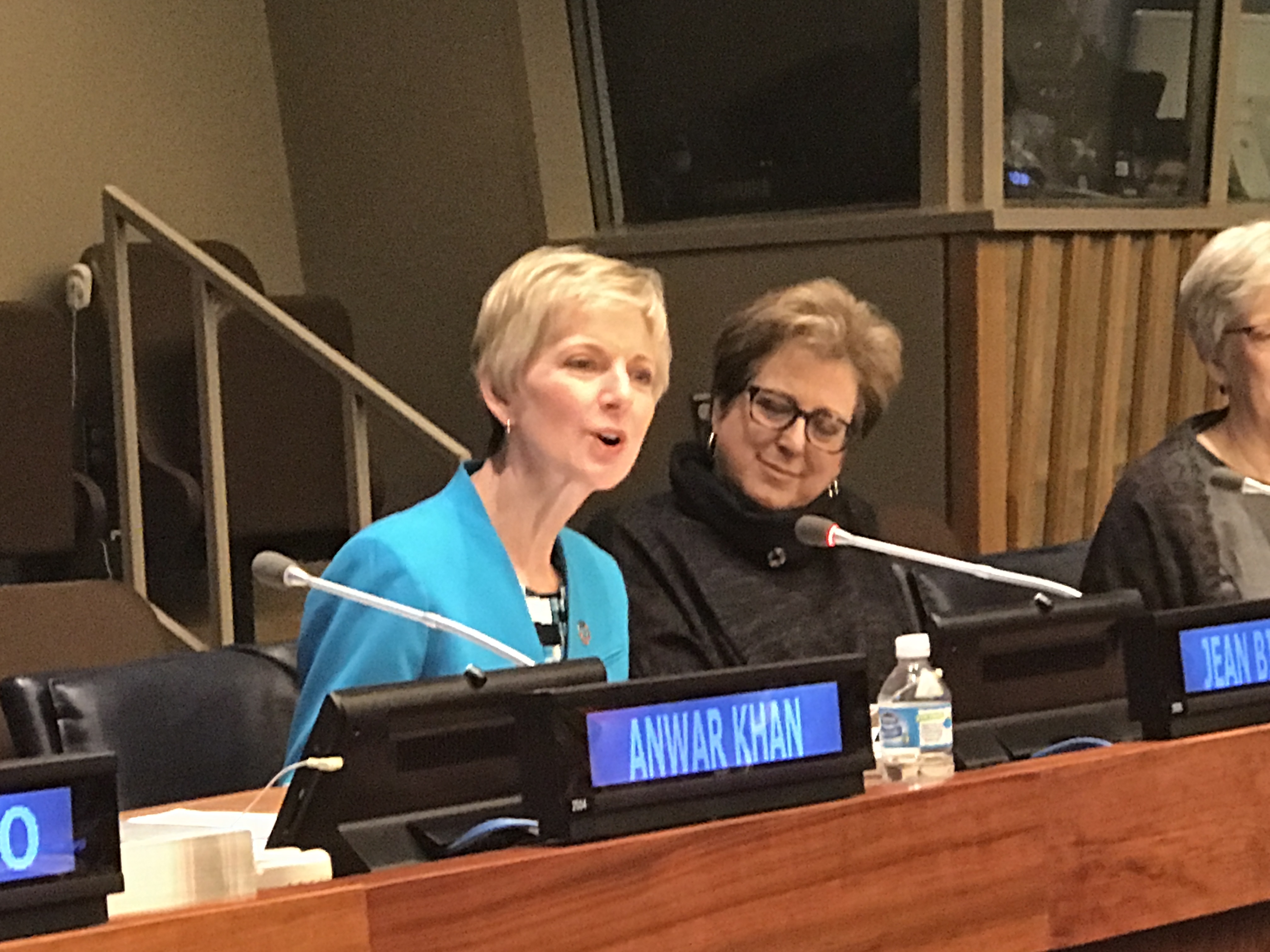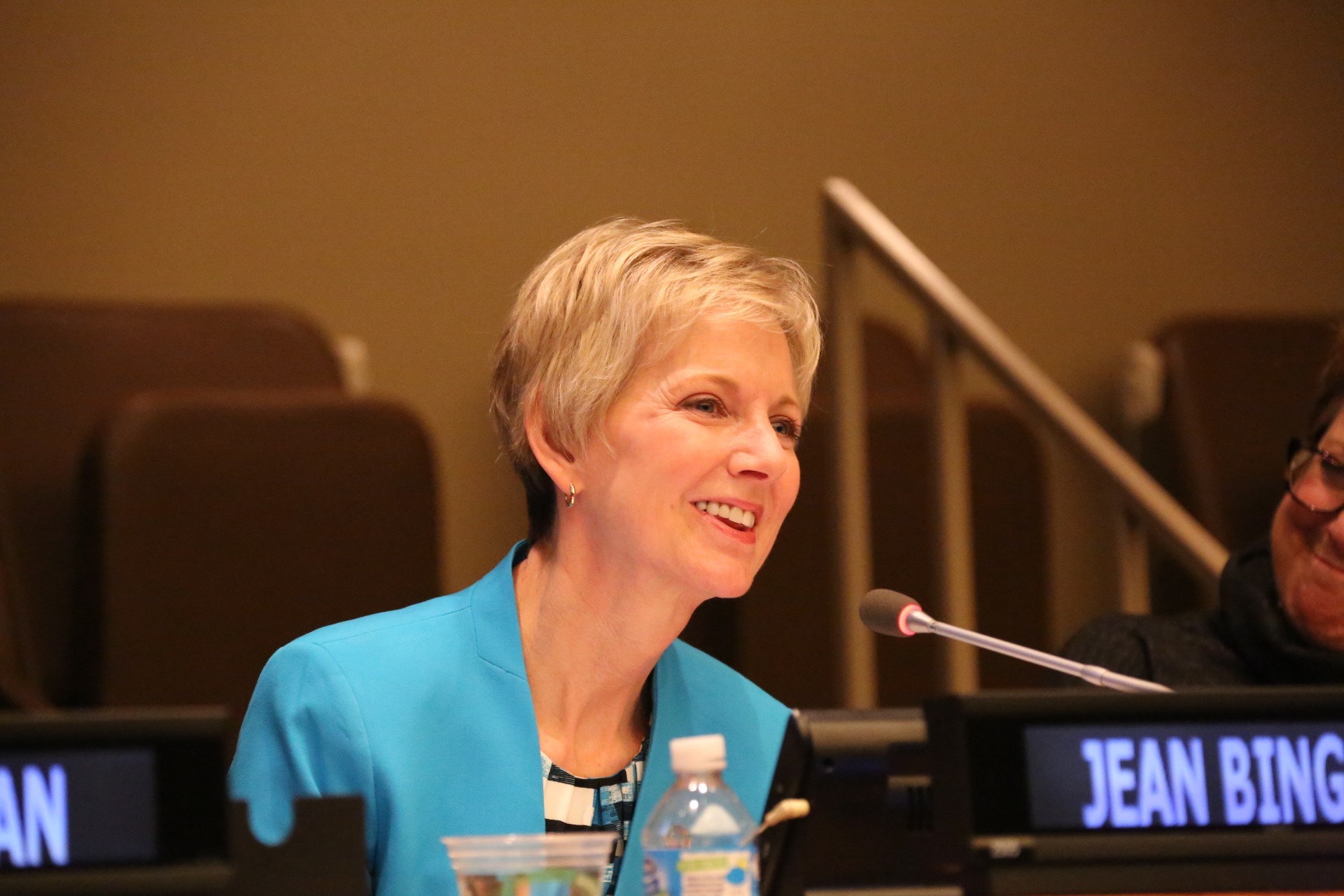 Sister Jean B. Bingham, the new general president of the Relief Society of The Church of Jesus Christ of Latter-day Saints, spoke at the United Nations in New York City Thursday on the Church’s humanitarian efforts during a faith-based “Focus on Faith” panel discussion. The annual briefing was sponsored by the U.N. Department of Public Information.