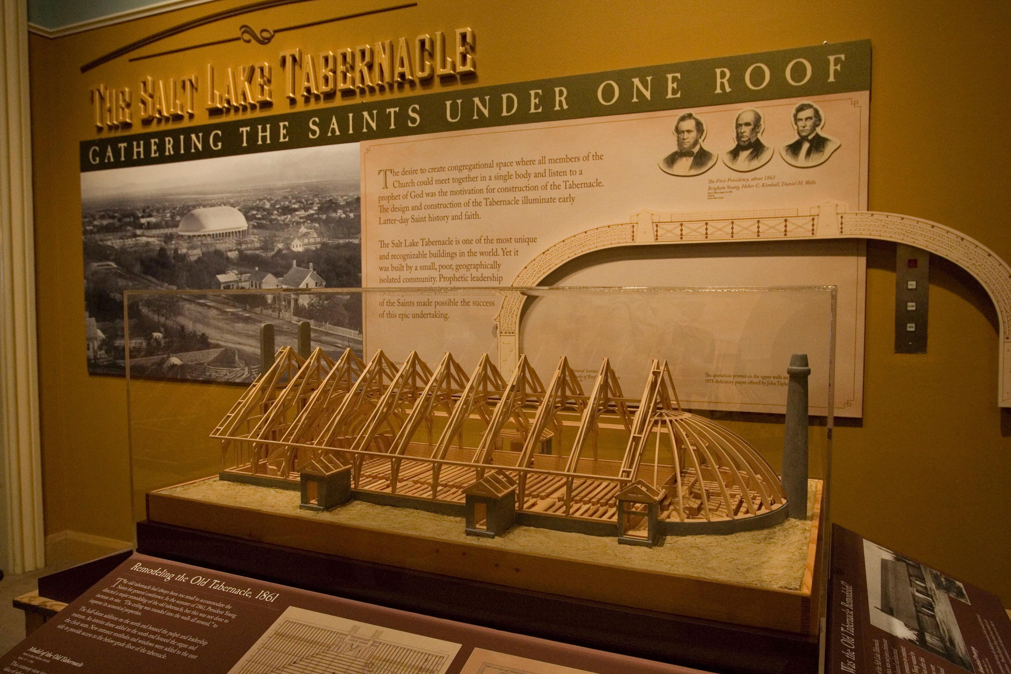 One of the most-asked questions about the Tabernacle relates to how the building’s dome-shaped roof was created in the late 1800s. A full-size replica of a section of roof trusses was built and now stands in the middle of the exhibit.