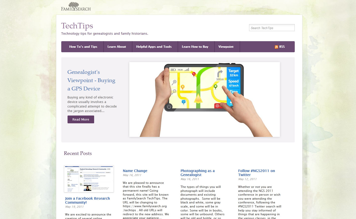 FamilySearch TechTips is a community effort that is a cross between a blog and an online technology magazine. Anyone can contribute articles and share their personal experiences. The TechTips articles don’t endorse specific products, although they may mention what is available in the marketplace. There will also be content on new technology or trends that impact the world of genealogy.