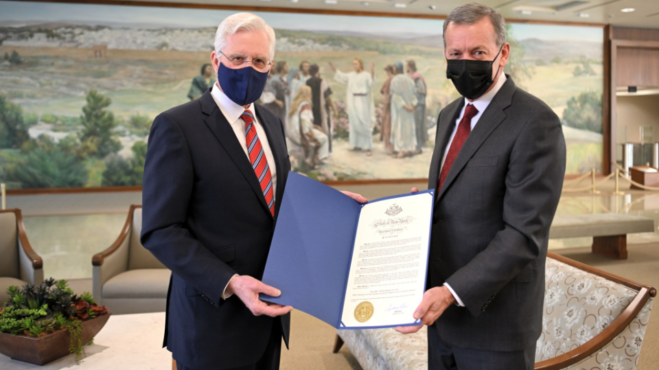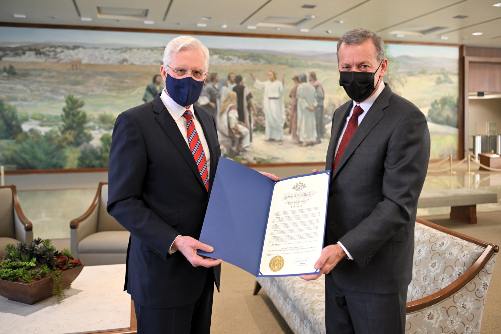 “It’s very significant, I believe, that the governor of the state and state government would recognize the deep significance of this for us and for the world,” Elder Christofferson said. “I was grateful that they recognize the significance of the Book of Mormon, again published in the state of New York.”