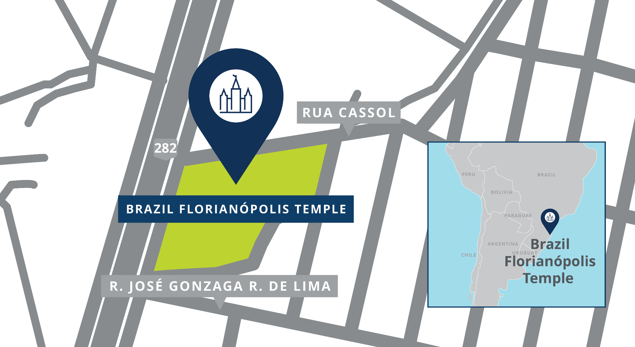 The Florianópolis Brazil Temple will be built on a 5.5 acre site located at Rua Cassol, 1120, Kobrasol, São José, Santa Catarina, Brazil. This will be the city’s first temple.