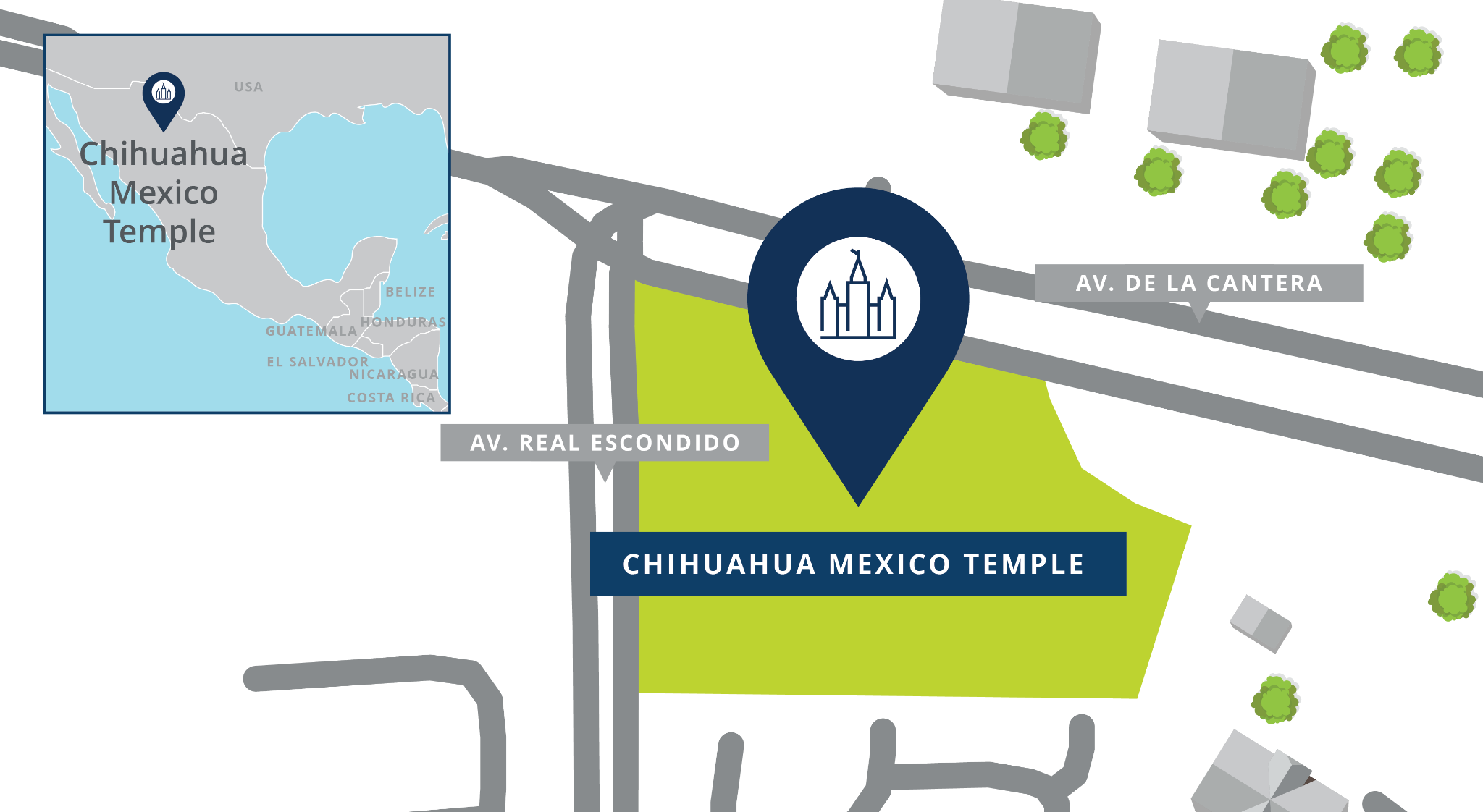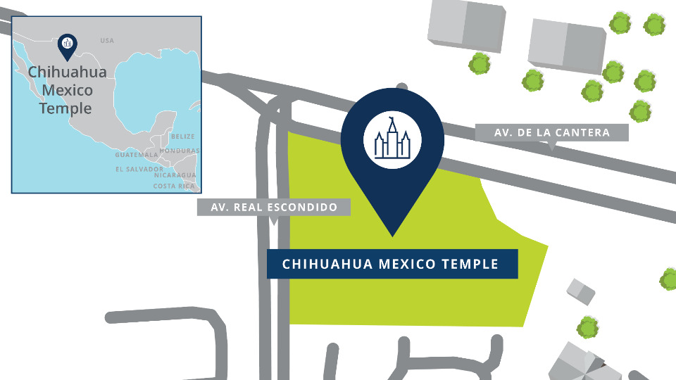 The Chihuahua Mexico Temple will be built on a 5.87-acre site located at the corner of Avenida de la Cantera and Avenida Real Escondido, Reserva Territorial la Hacienda, Chihuahua, Chihuahua, 31216. Plans call for a single-story temple of approximately 19,000 square feet. This will be the state’s third house of the Lord.