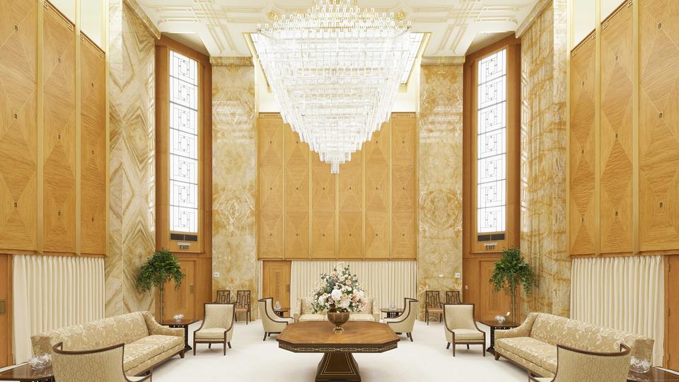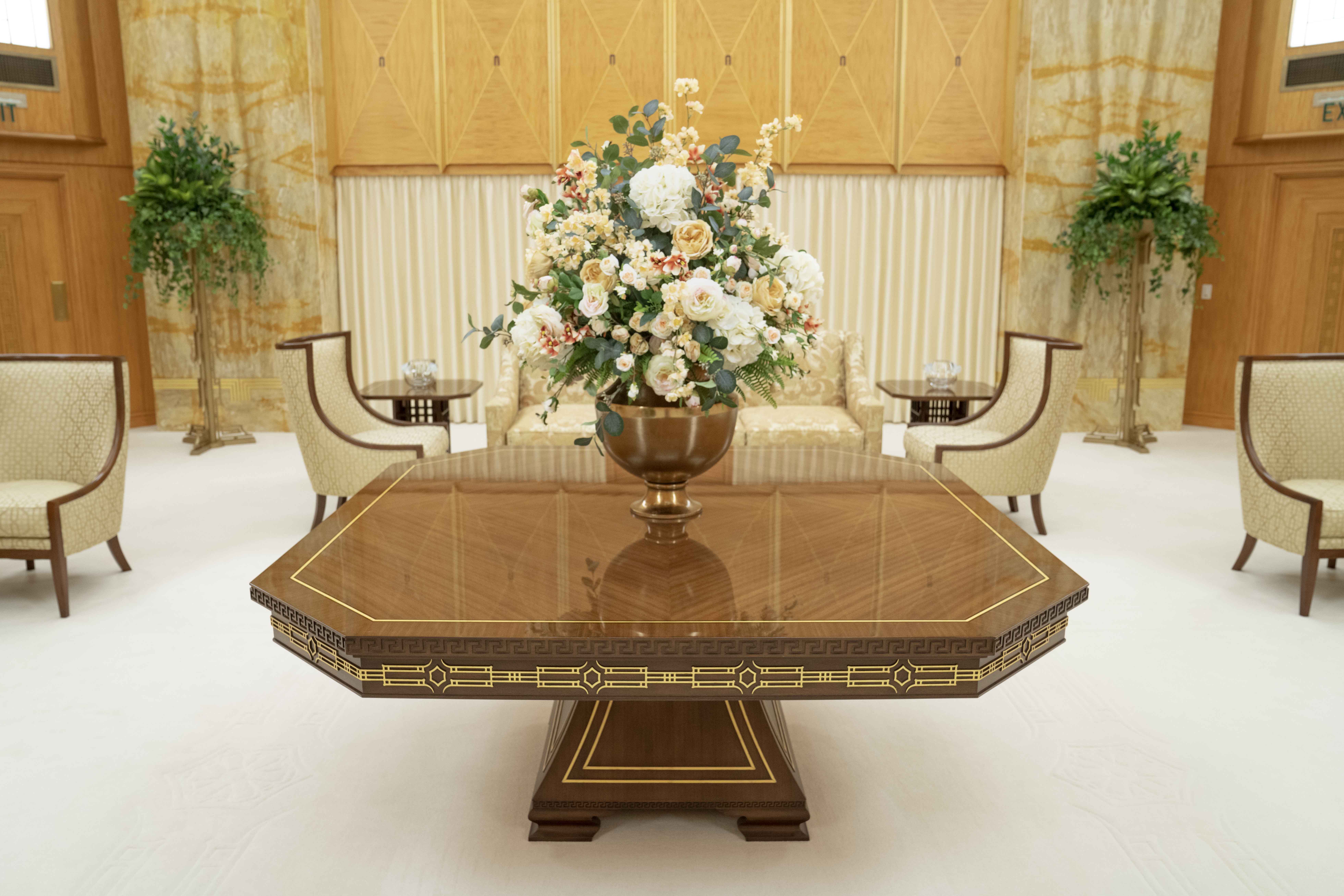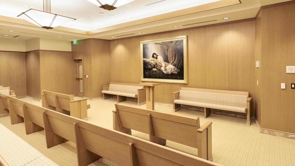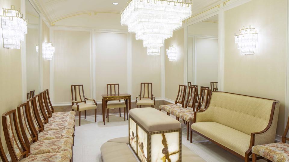 The temple’s main floor now includes a waiting area and one of the only areas with windows.