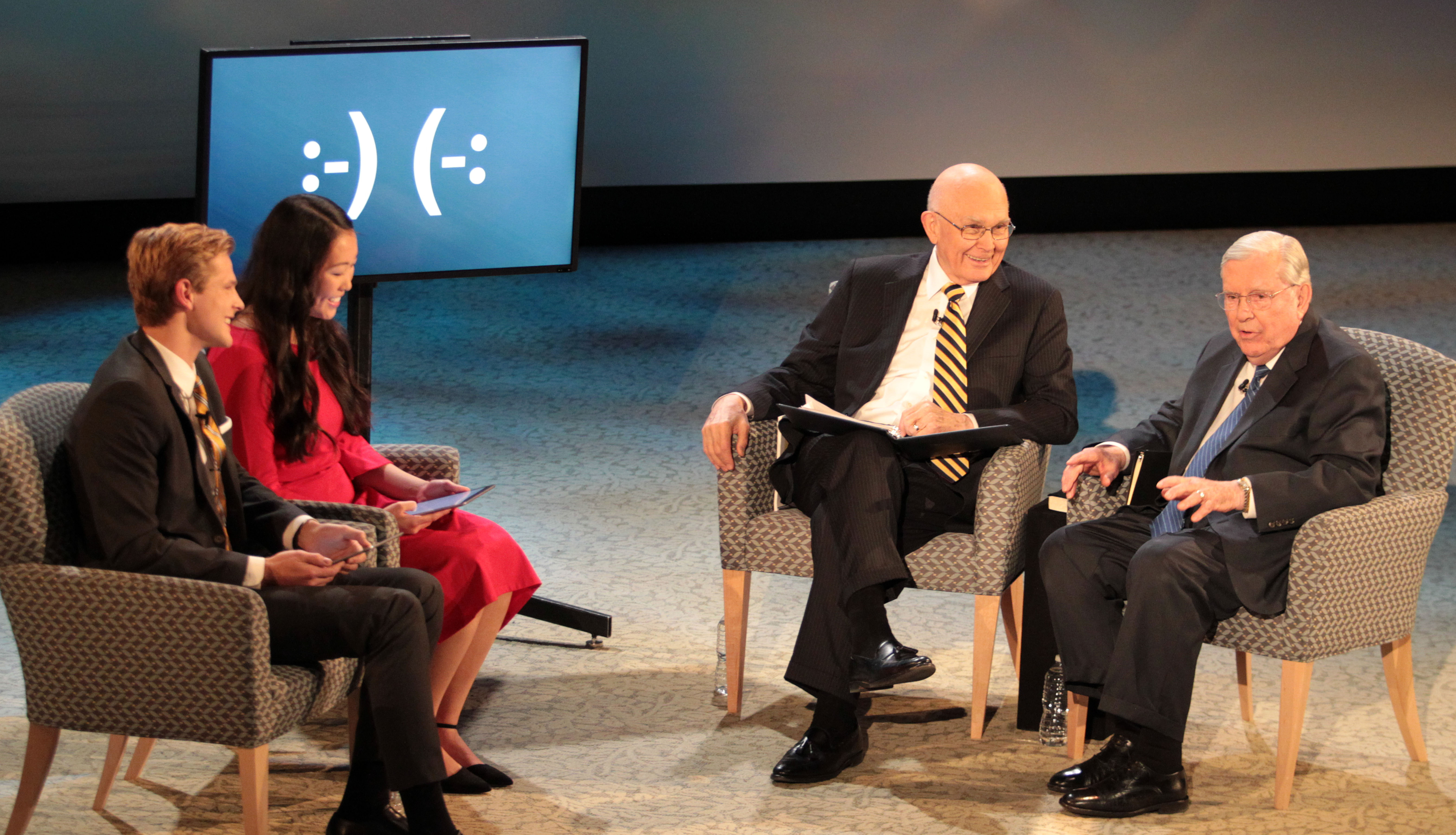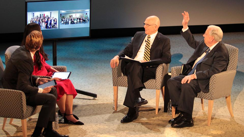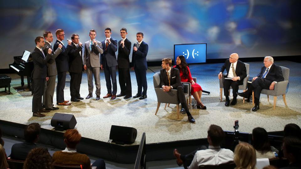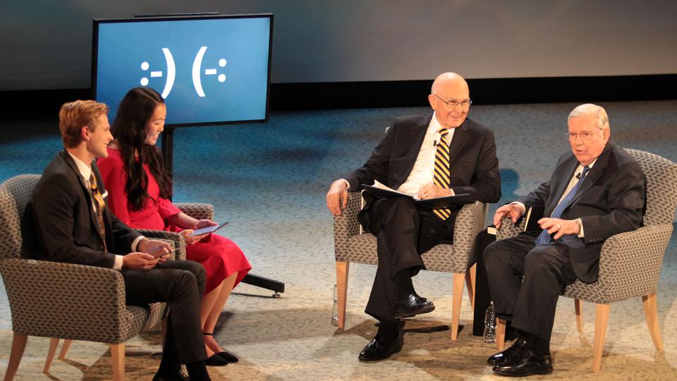 Elder Oaks and Elder M. Russell Ballard, both of the Quorum of the Twelve Apostles of The Church of Jesus Christ of Latter-day Saints, answered questions from young single adults around the world ages 18 to 30 Sunday night in a live 90-minute Face to Face broadcast. The event originated from the campus of Utah State University in Logan, Utah.