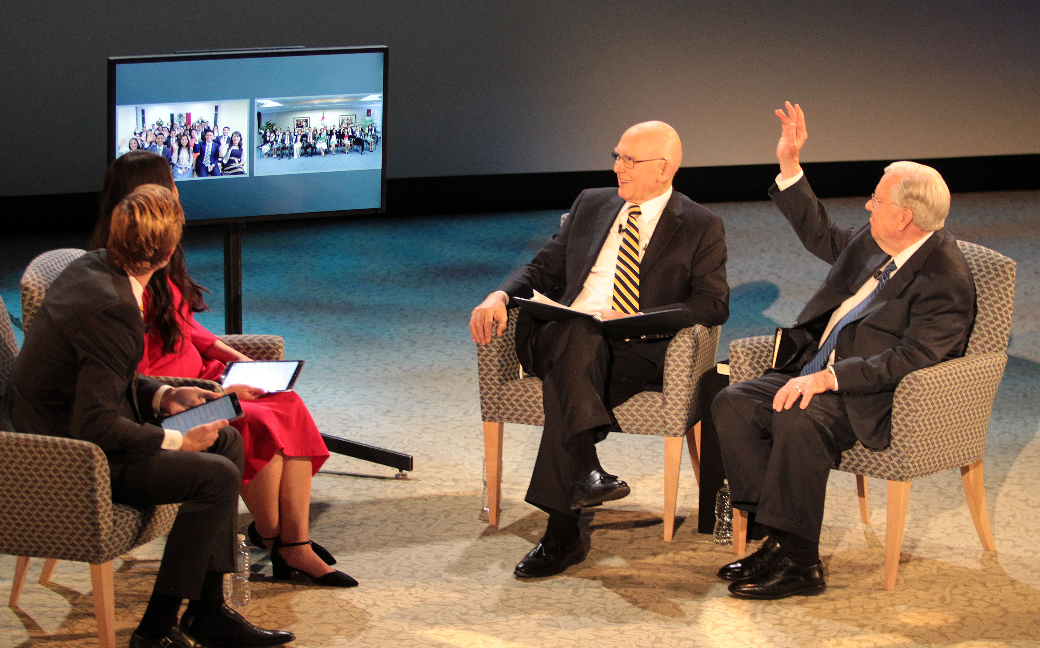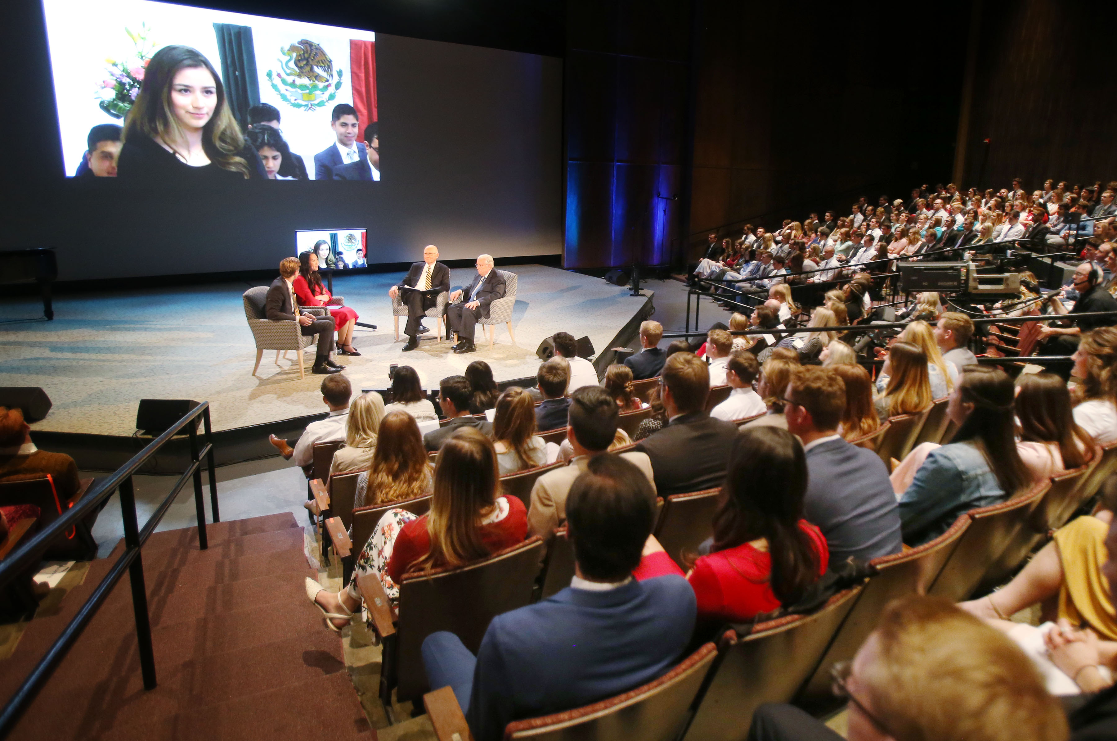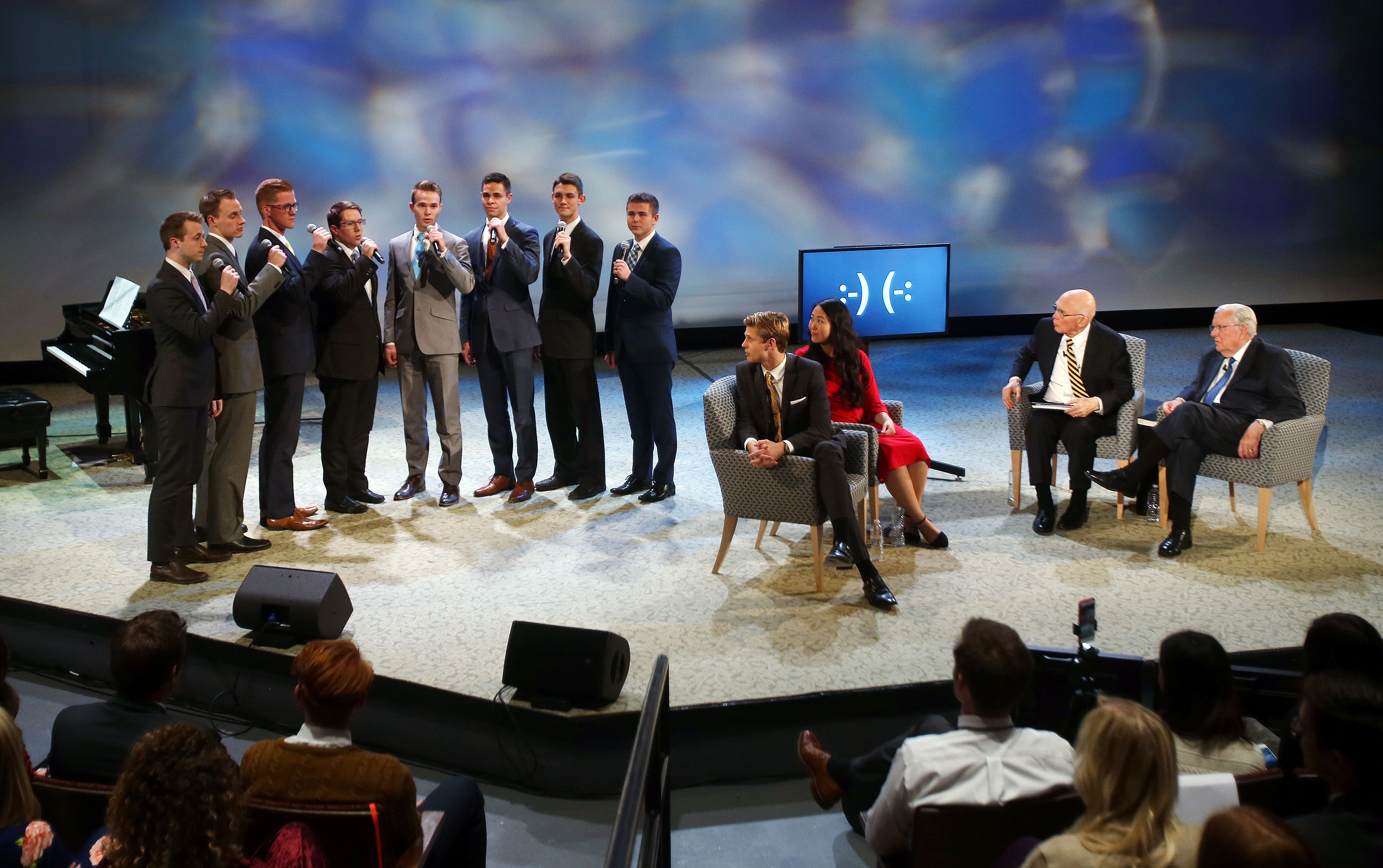 Elder Oaks and Elder M. Russell Ballard, both of the Quorum of the Twelve Apostles of The Church of Jesus Christ of Latter-day Saints, answered questions from young single adults around the world ages 18 to 30 Sunday night in a live 90-minute Face to Face broadcast. The event originated from the campus of Utah State University in Logan, Utah.