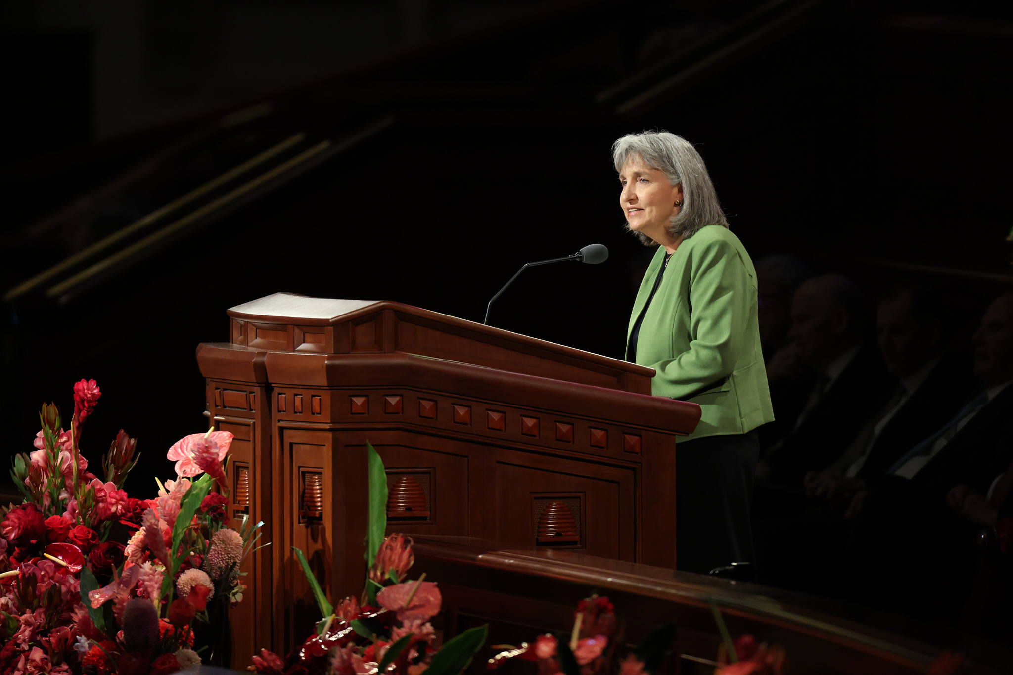 Sister J. Anette Dennis, First Counselor in the Relief Society General Presidency, speaks at the Saturday evening session of general conference at the Conference Center in Salt Lake City, Utah, on October 4, 2025. 2025 by Intellectual Reserve, Inc. All rights reserved.Sharing the story of 100-year-old Orville Rogers, who finished last in five events at a track and field championships for seniors but still set five world records, Sister J. Anette Dennis encouraged listeners not to judge each other (and themselves) but to cheer each other on.