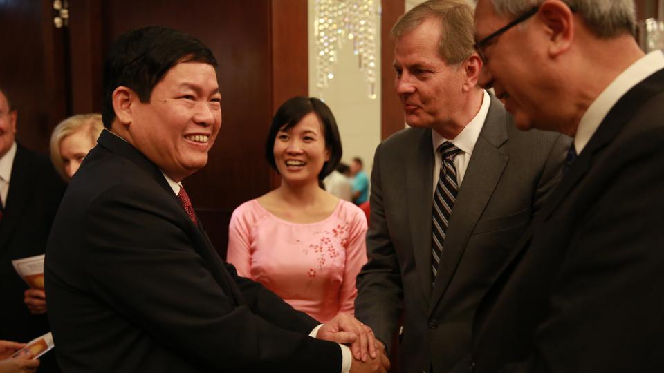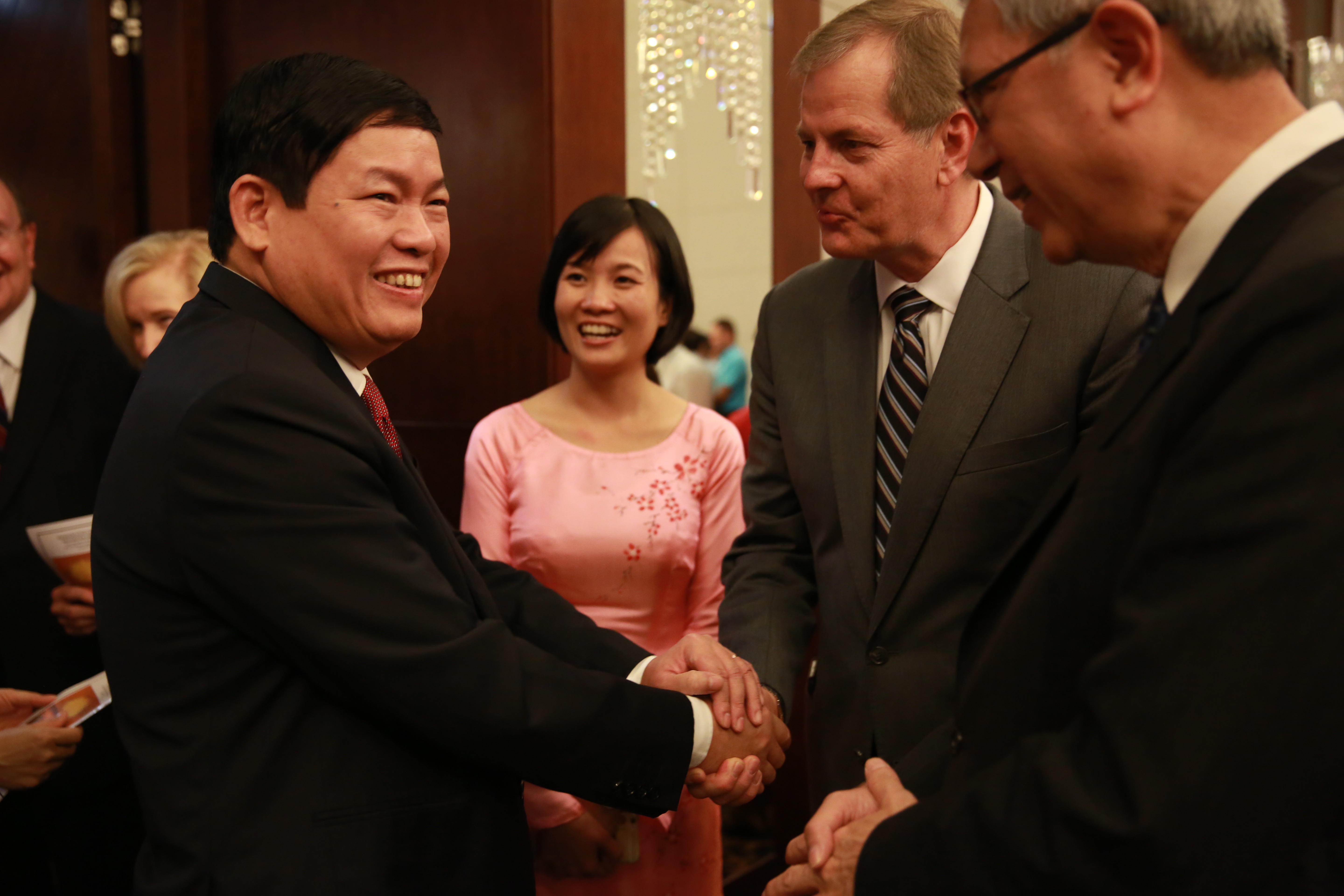 Elder Gary E. Stevenson of the Quorum of the Twelve Apostles and Elder Gerrit W. Gong of the Presidency of the Seventy also represented the Church at the event. Government leaders in Vietnam included Bui Thanh Ha, vice chairman of the Government Committee for Religious Affairs, and Le Ba Trinh, vice president of the Fatherland Front.