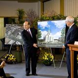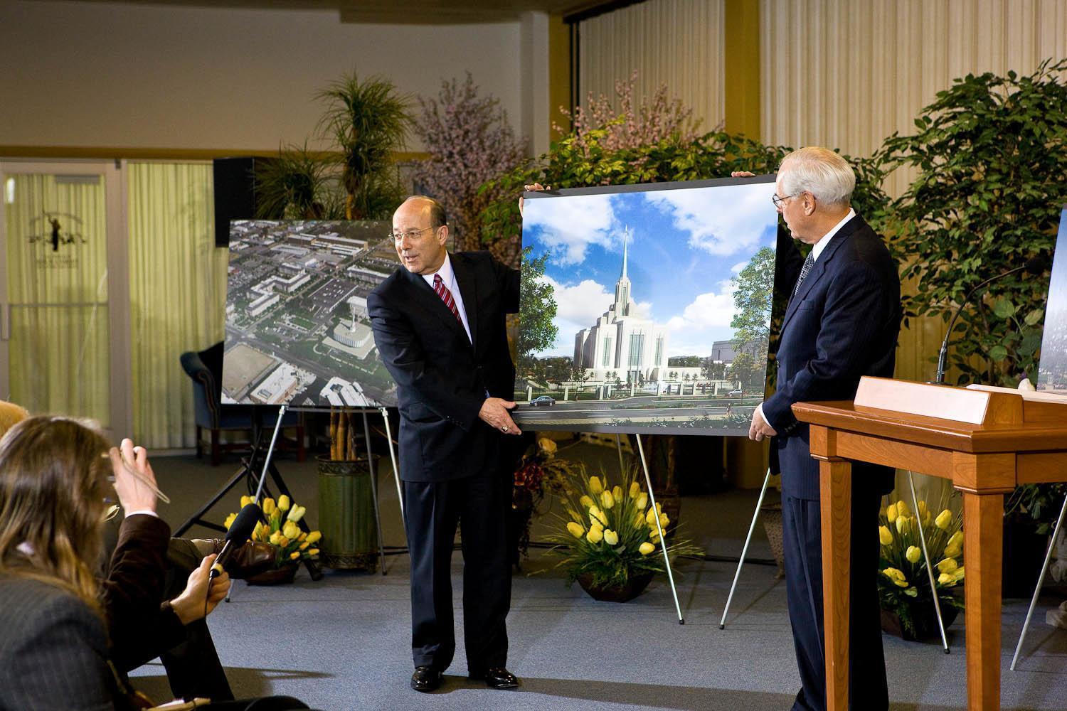 The Church of Jesus Christ of Latter-day Saints announced plans today to remodel and architecturally change the appearance of the Ogden Utah Temple and its grounds. Elder William R. Walker made the announcement in downtown Ogden with Mayor Matthew R. Godfrey.