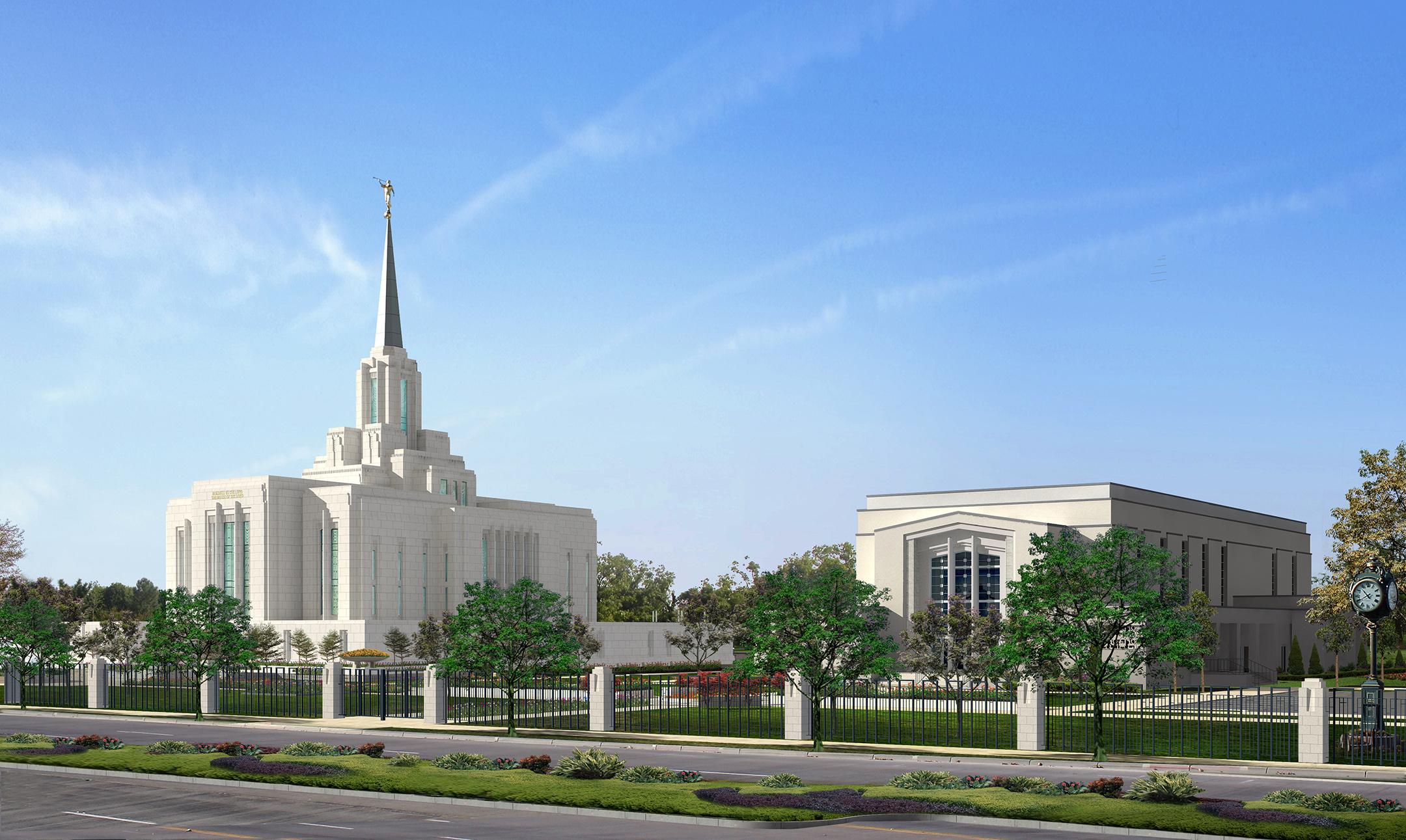 Elder Walker went on to explain that the temple’s entire exterior will be reshaped with new stone and art glass. The entrance to the temple will also be moved from the west side to the east side, where it will face Washington Boulevard.