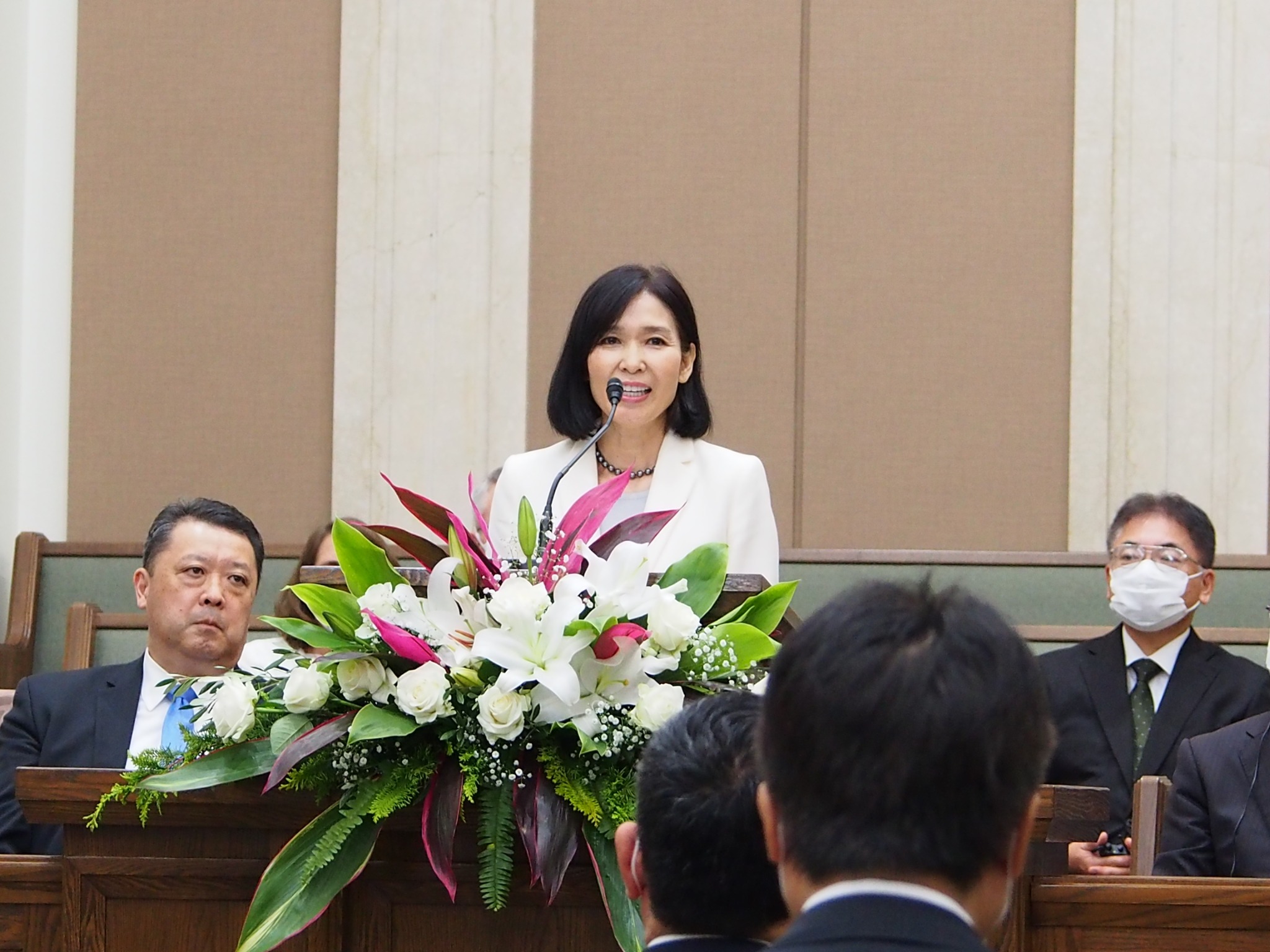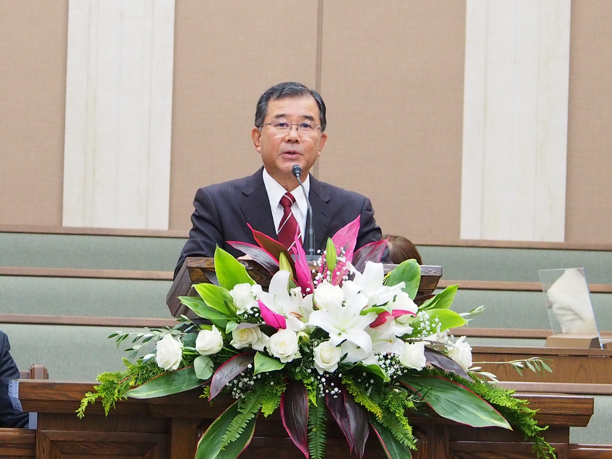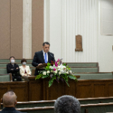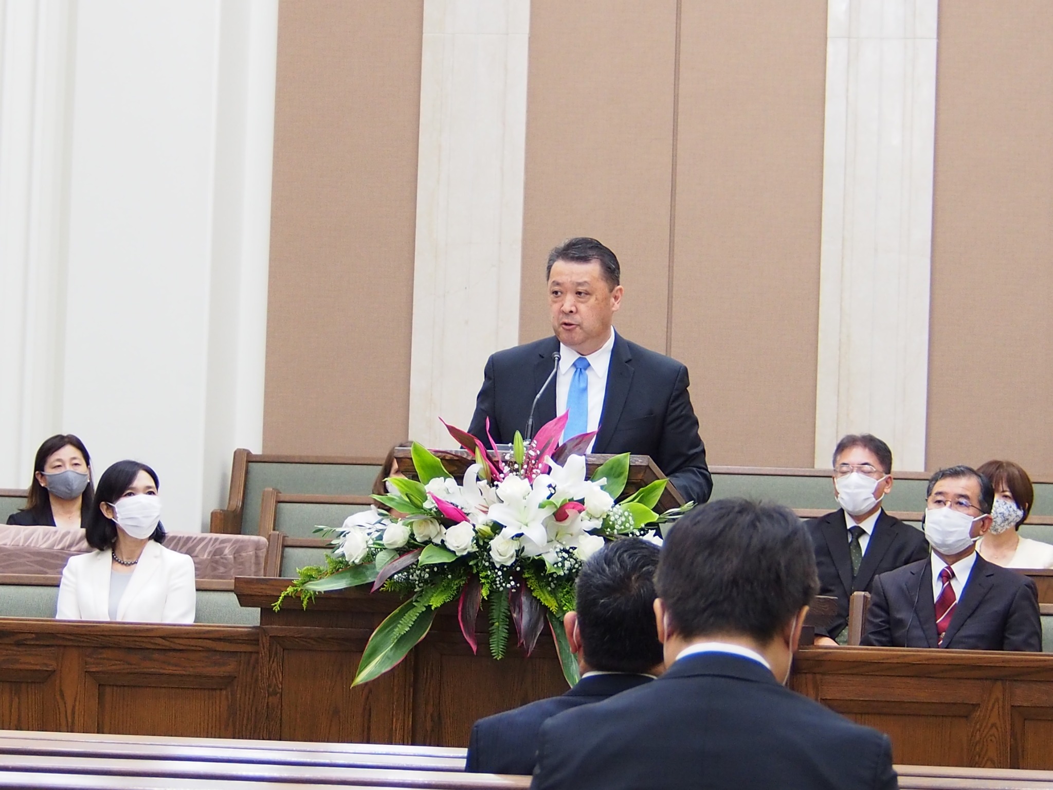 “Despite the small gathering, we are extremely grateful as we meet to consecrate this island for the building of a holy temple this day,” said Elder Takashi Wada, Asia North Area president, who presided at the groundbreaking event for the Okinawa Japan Temple.