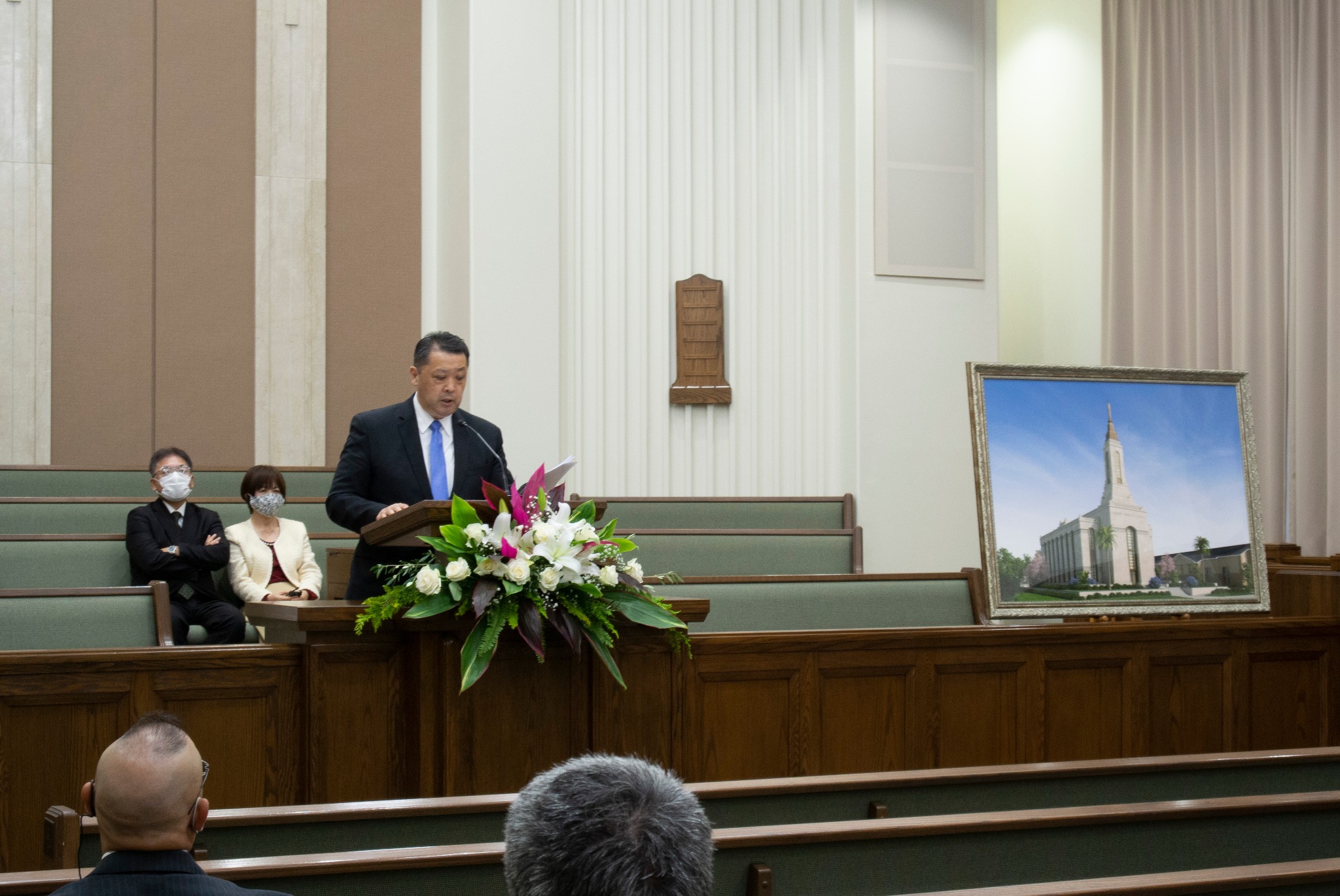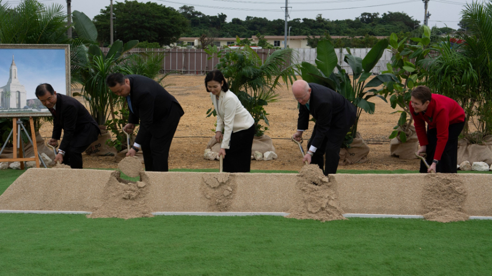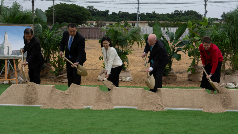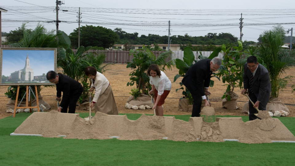 A small group of Latter-day Saint leaders and invited guests gathered in Okinawa, Japan, on Saturday, December 5, 2020, for the groundbreaking of a new temple of The Church of Jesus Christ of Latter-day Saints.