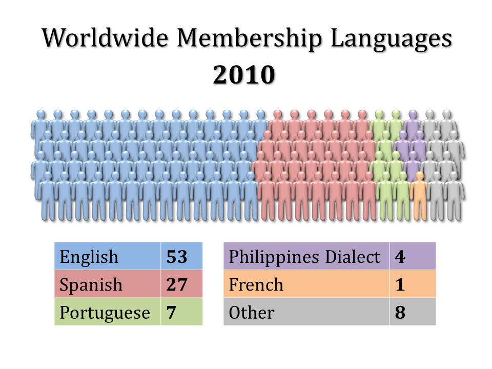 To illustrate the point, Otterson takes the Church’s 14 million people and statistically represents that whole body as a single congregation of 100. The infographic above shows the various languages spoken by this congregation of 100 Latter-day Saints.